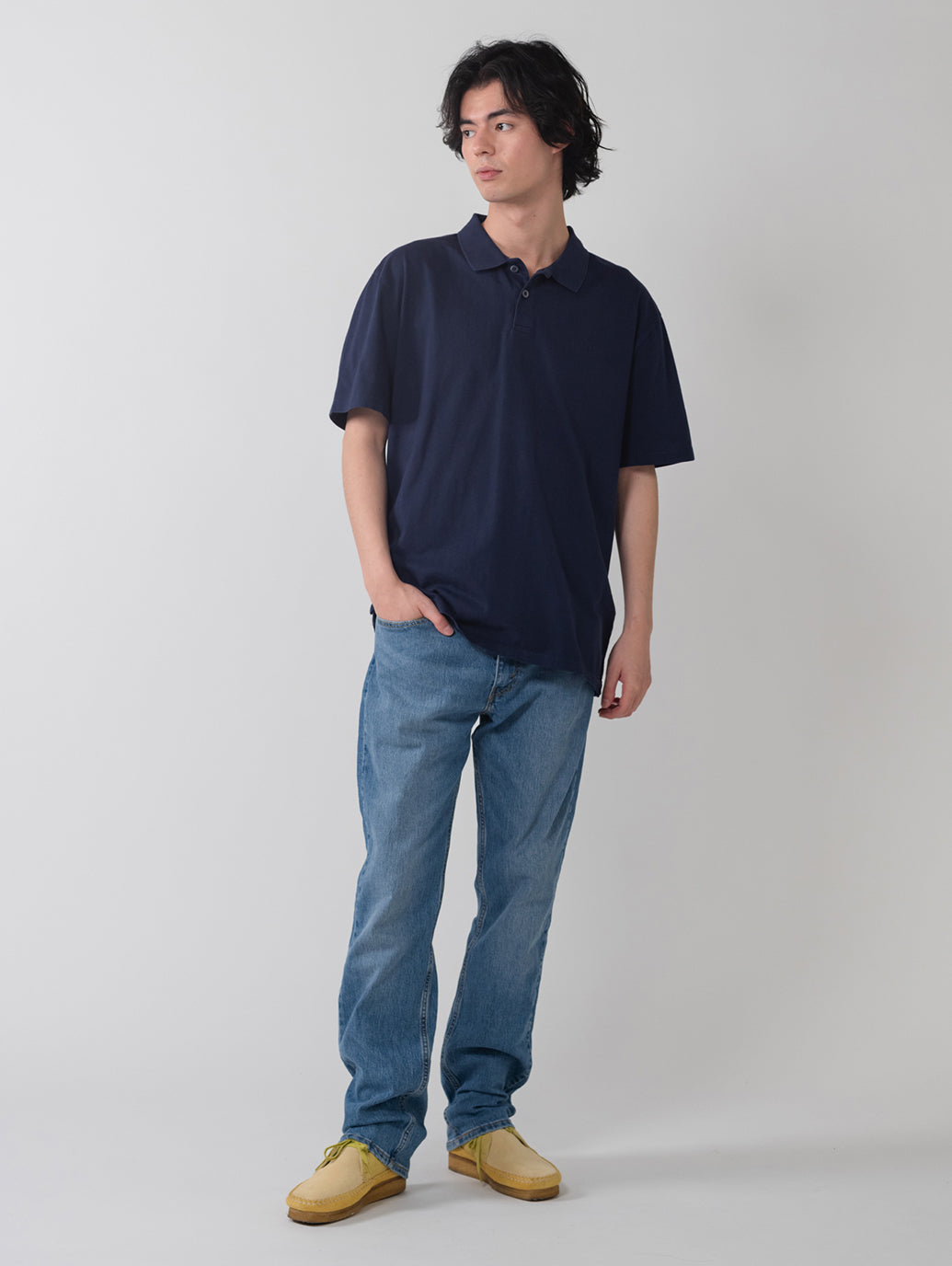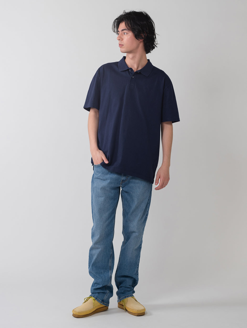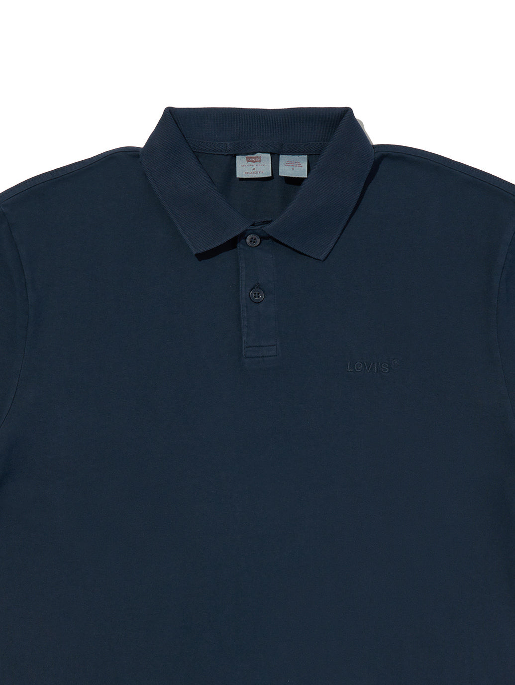 胸に同色でLevi's®ロゴが刺繍されたネイビーカラーのポロシャツ。綿100%でコシのある生地。暖かくなる春先にホワイトパンツやチノパンツに合わせていただきたい一枚です。