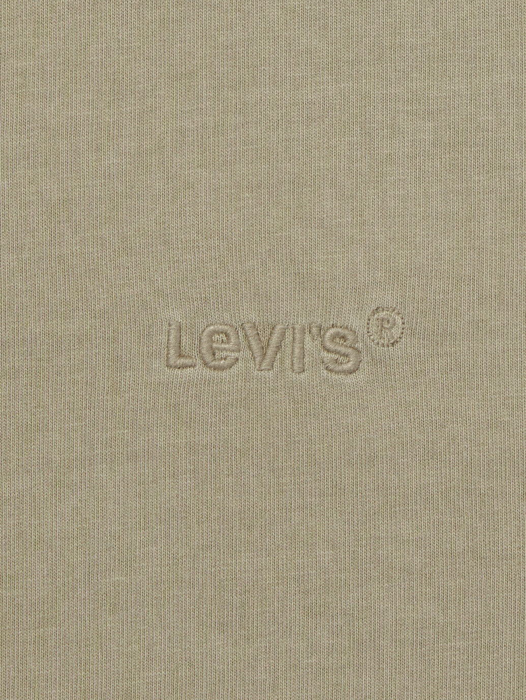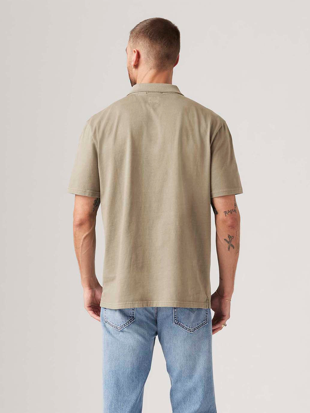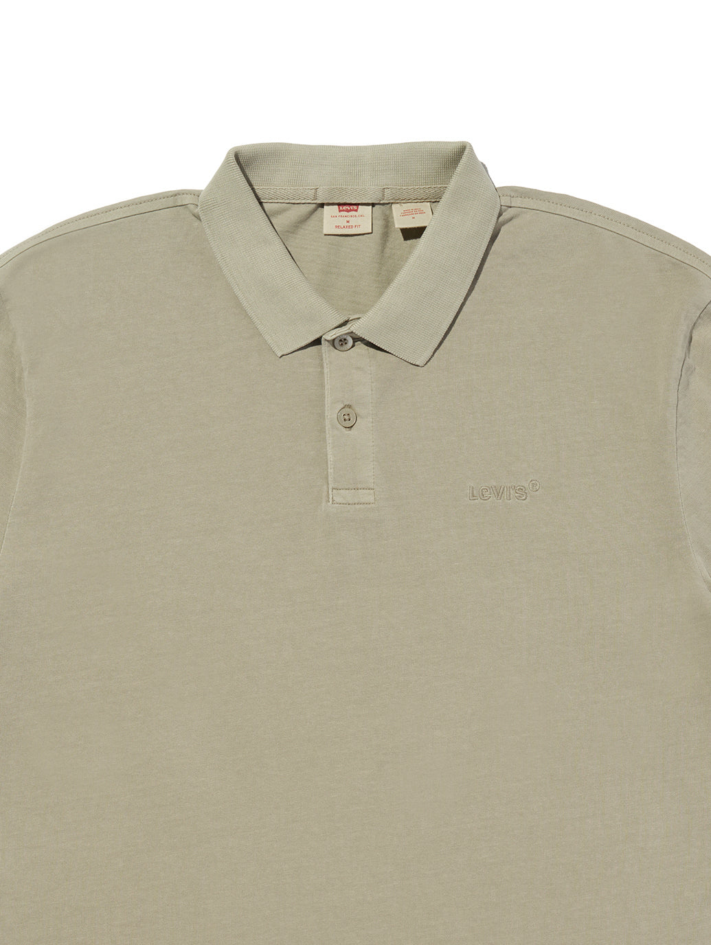 胸に同色でLevi's®ロゴが刺繍された洗いをかけたようなカーキカラーのポロシャツ。綿100%でしっかりとした生地。春先から暖かくなる時期にホワイトパンツやチノパンツに合わせていただきたい一枚です。