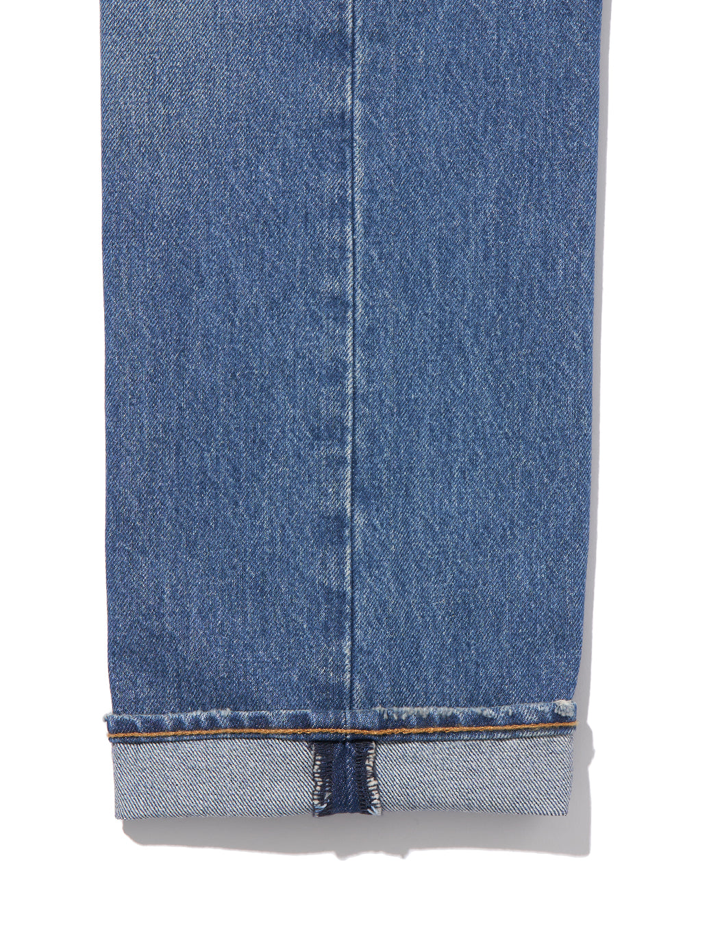 生誕150周年を迎えるジーンズの原点"501"モデルをジャーナルスタンダード(レリューム)のフィルターを通してアレンジ。501®のストレートシルエットはそのままにディテール・加工・サイズ感でオリジナリティを追求した逸品となります。生地には14.6ozの100%コットン生地を使用。ダークインディゴのベースカラーに、ポケット口と裾に緩やかにダメージ加工を施し、膝から腿にかけて適度なたて落ちとサイドシーム部分にアタリを入れることで、ほどよく穿き込んだ風合いを表現しています。レザーパッチやBIG"E"のレッドタブなどプレミアムなディテールを踏襲しながらも、一番の特徴は右ポケットに施したホワイトのバータックで、これは別注アイテムである証を示す特別仕様となります。選ぶサイズ次第で、千差万別の着こなしが可能です。