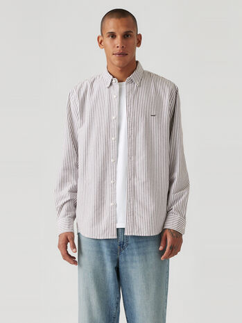 Levi's®が毎シーズンで展開しているボタンダウンシャツ。トレンドに合わせた身幅がゆったりとしたリラックスフィットを採用しました。ホワイトカラーにベージュのストライプ柄で濃紺のデニムやチノと合わせてビジネスシーンにもおすすめの一着です。
