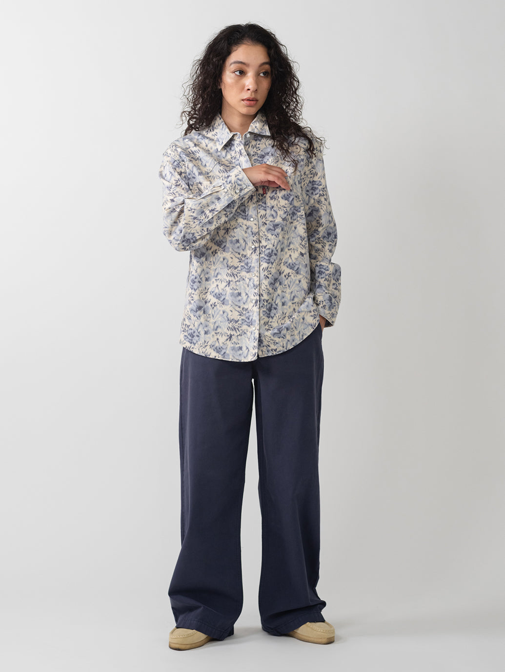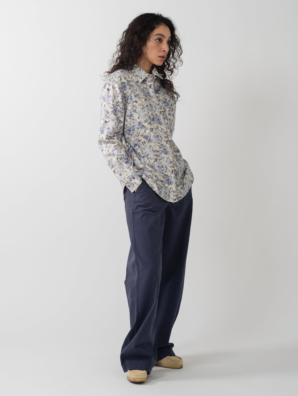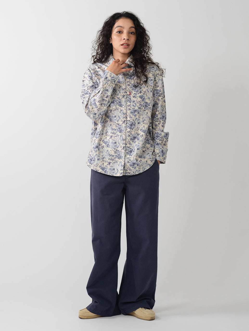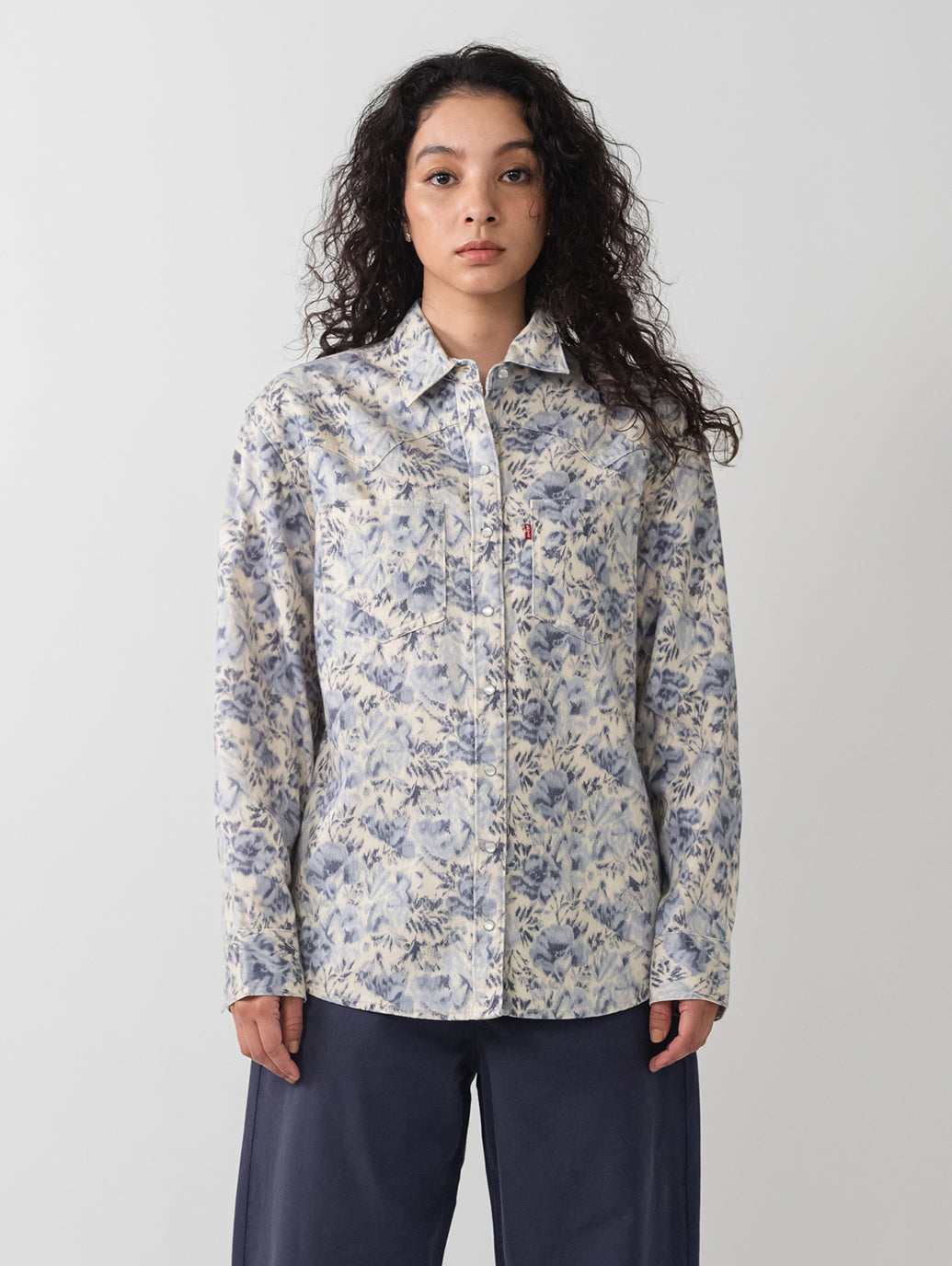カウボーイブーツは付属しません。 Teodora ウエスタン シャツは、クラシックなスナップボタン フロント、2 つのパッチ ポケット、リラックスしたフィット感、ウエスタン風のヨーク デザインを備え、ウエスタンの定番をフェミニンにアレンジしたものです。