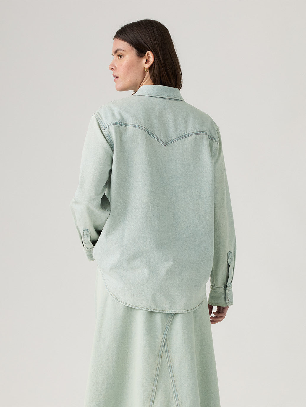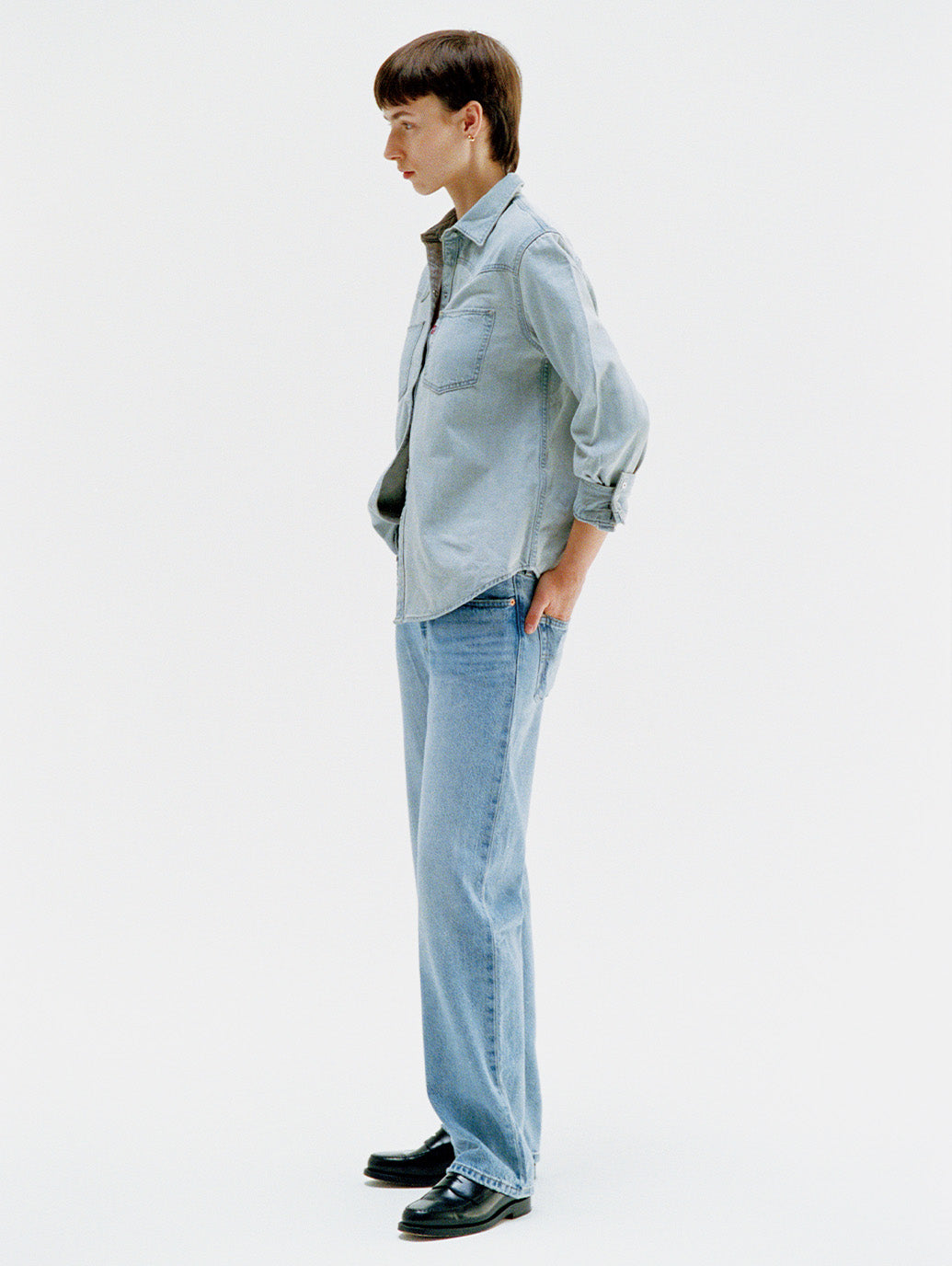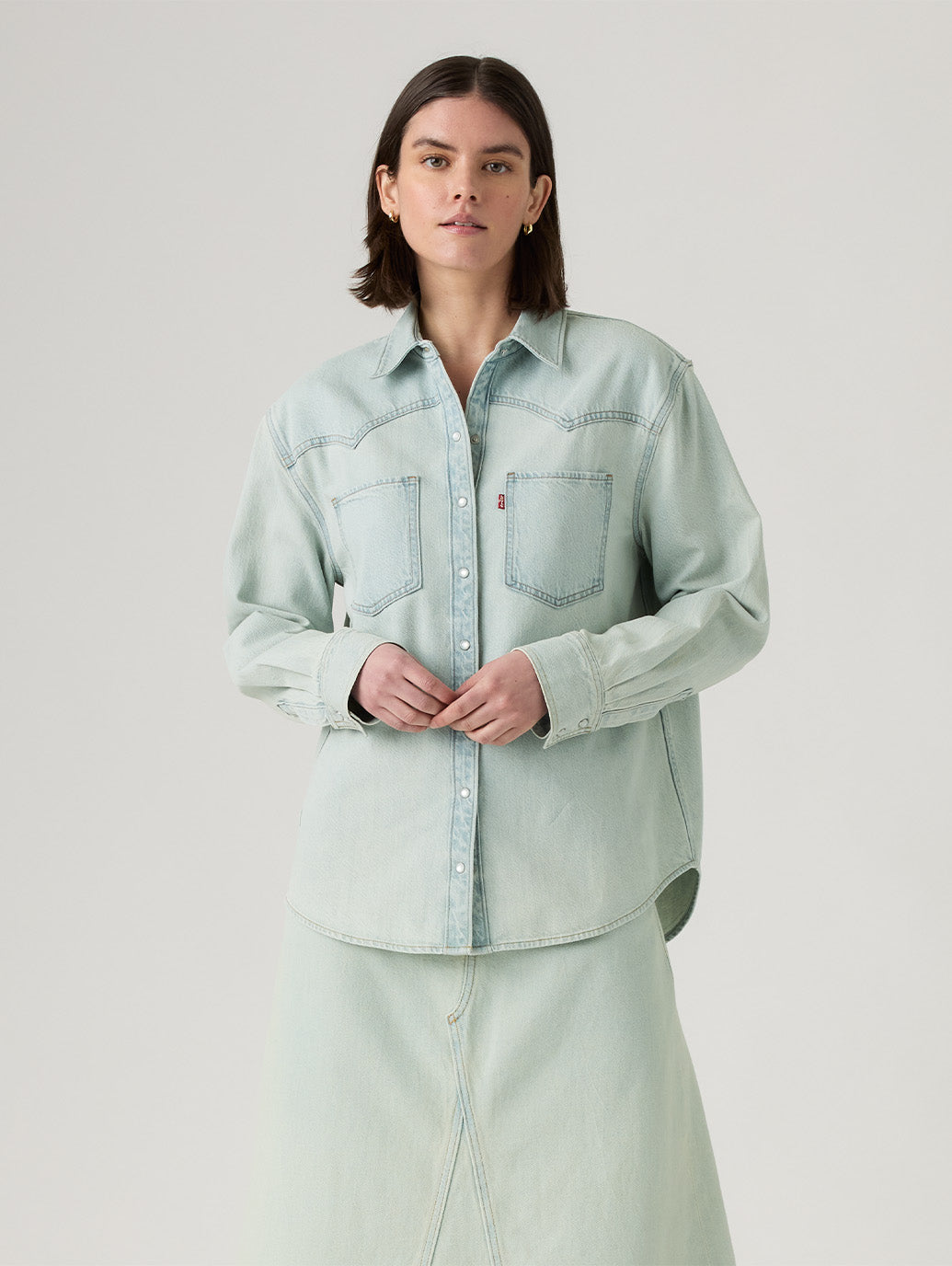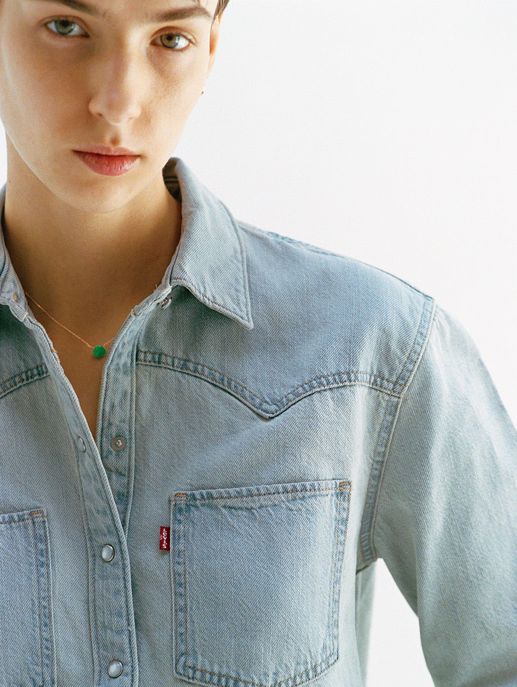 定番の ウエスタン シャツがデザインされました。クラシックなスナップボタン フロント、2 つのパッチ ポケット、リラックスしたフィット感、ウエスタン風のヨーク デザインを備え、ウエスタンの定番をフェミニンにアレンジしたものです。お気に入りのジーンズと合わせてこれからの季節のセットアップコーデをお楽しみください。