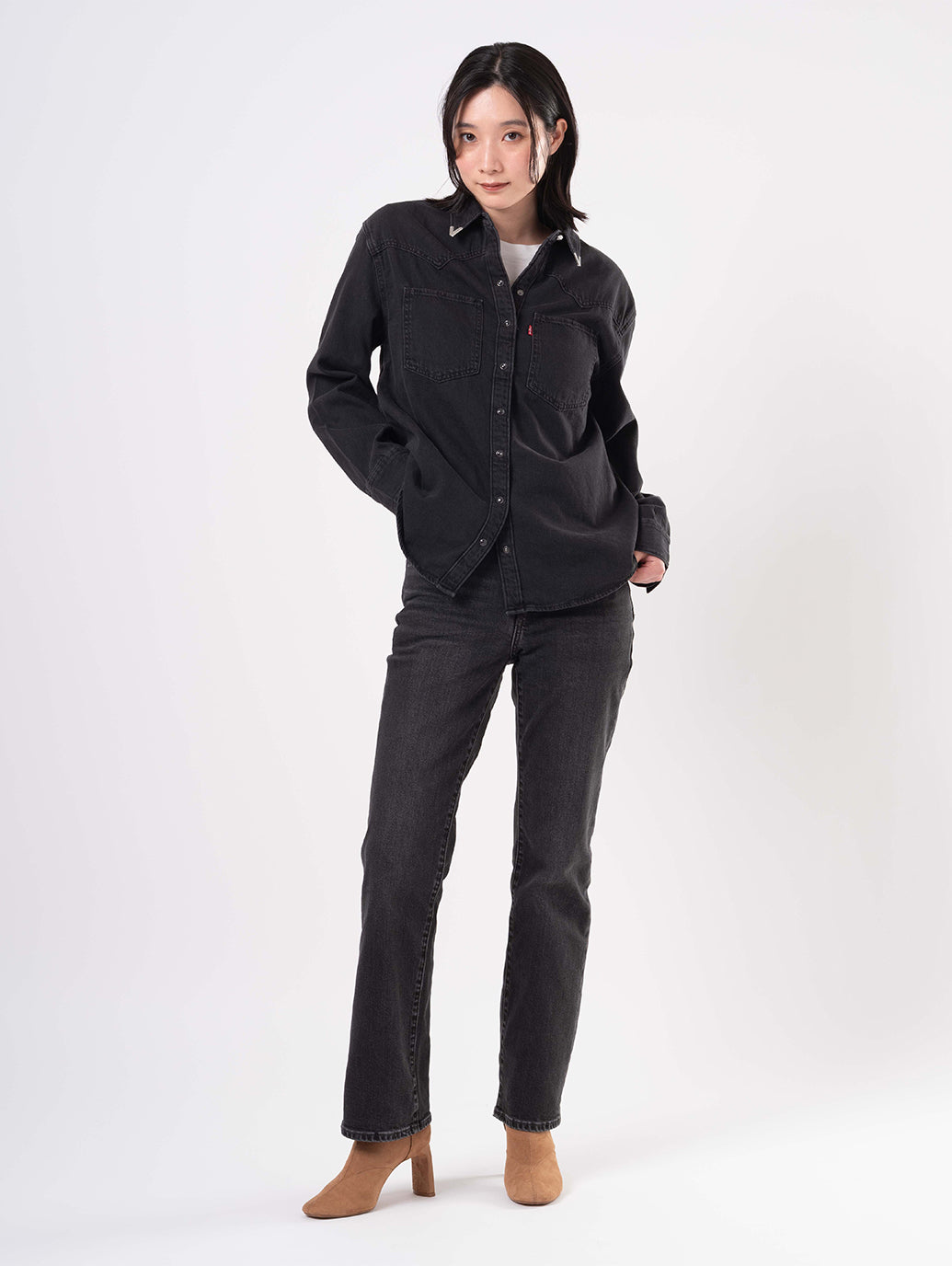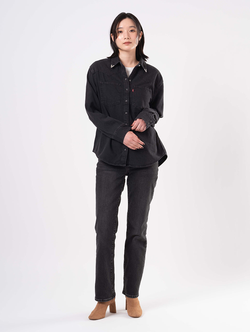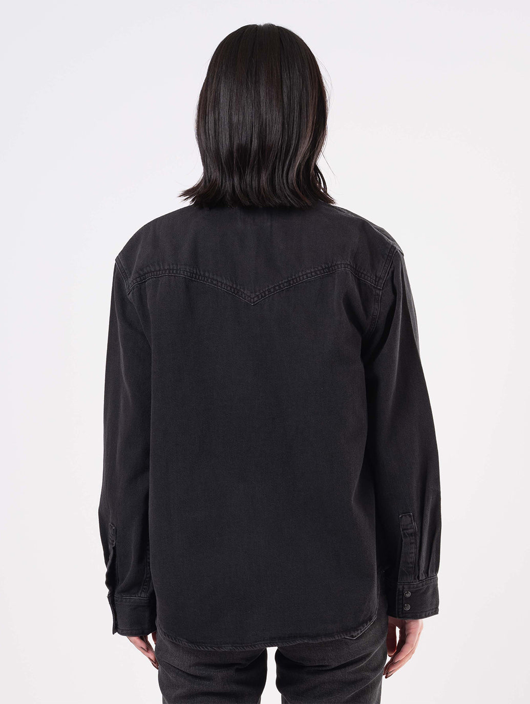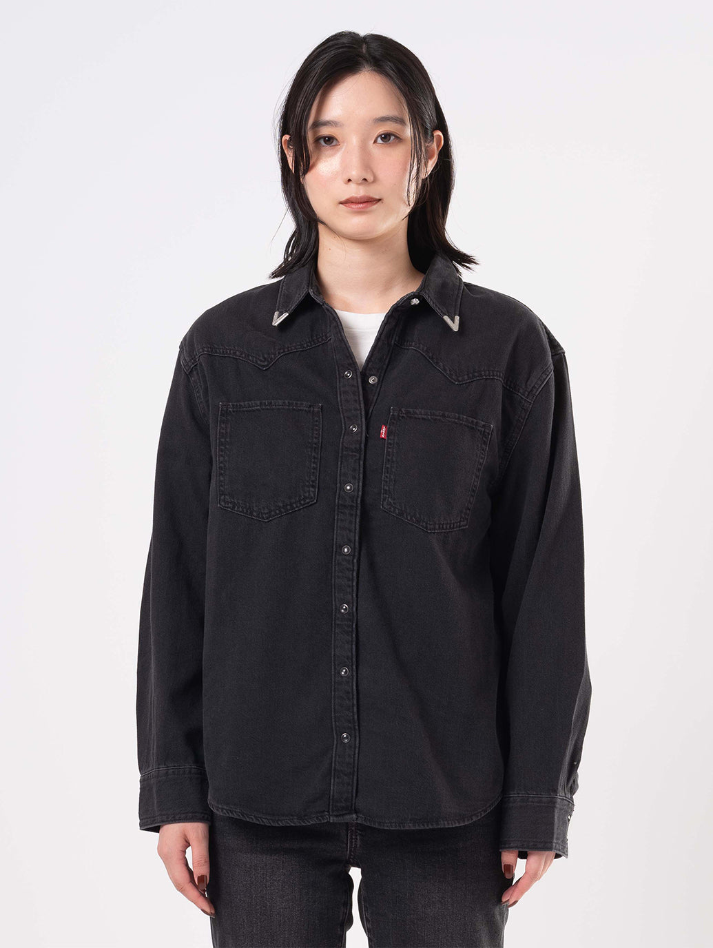 定番の ウエスタン シャツがデザインされました。クラシックなスナップボタン フロント、2 つのパッチ ポケット、リラックスしたフィット感、ウエスタン風のヨーク デザインを備え、ウエスタンの定番をフェミニンにアレンジしたものです。お気に入りのジーンズと合わせてこれからの季節のセットアップコーデをお楽しみください。