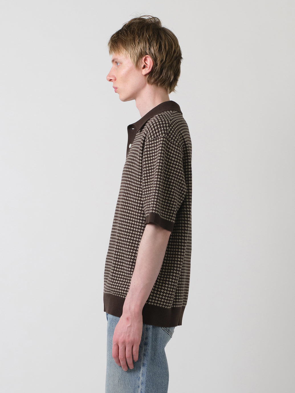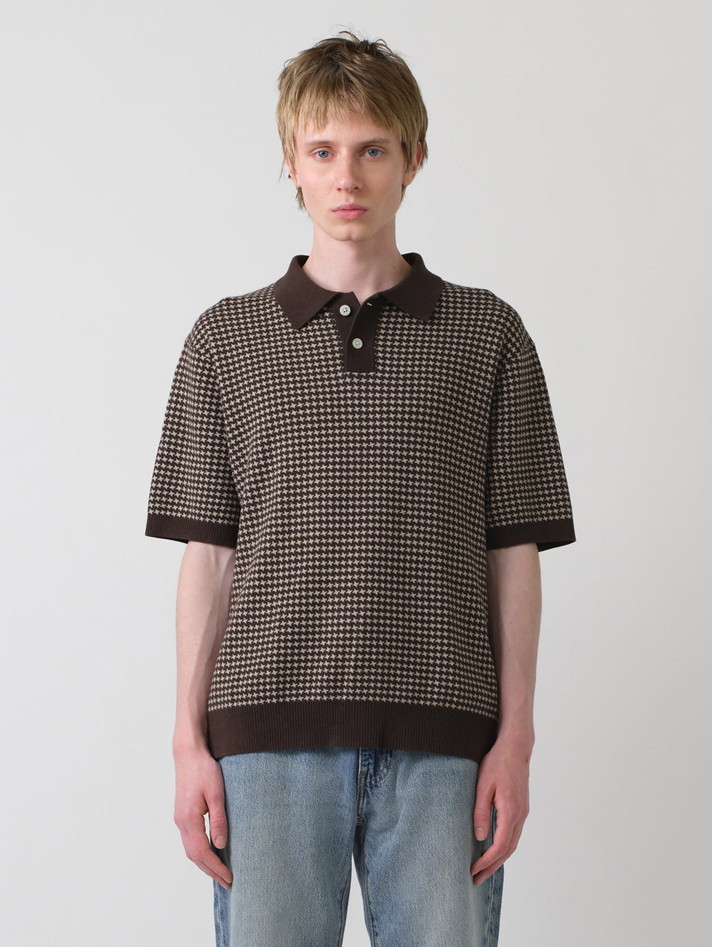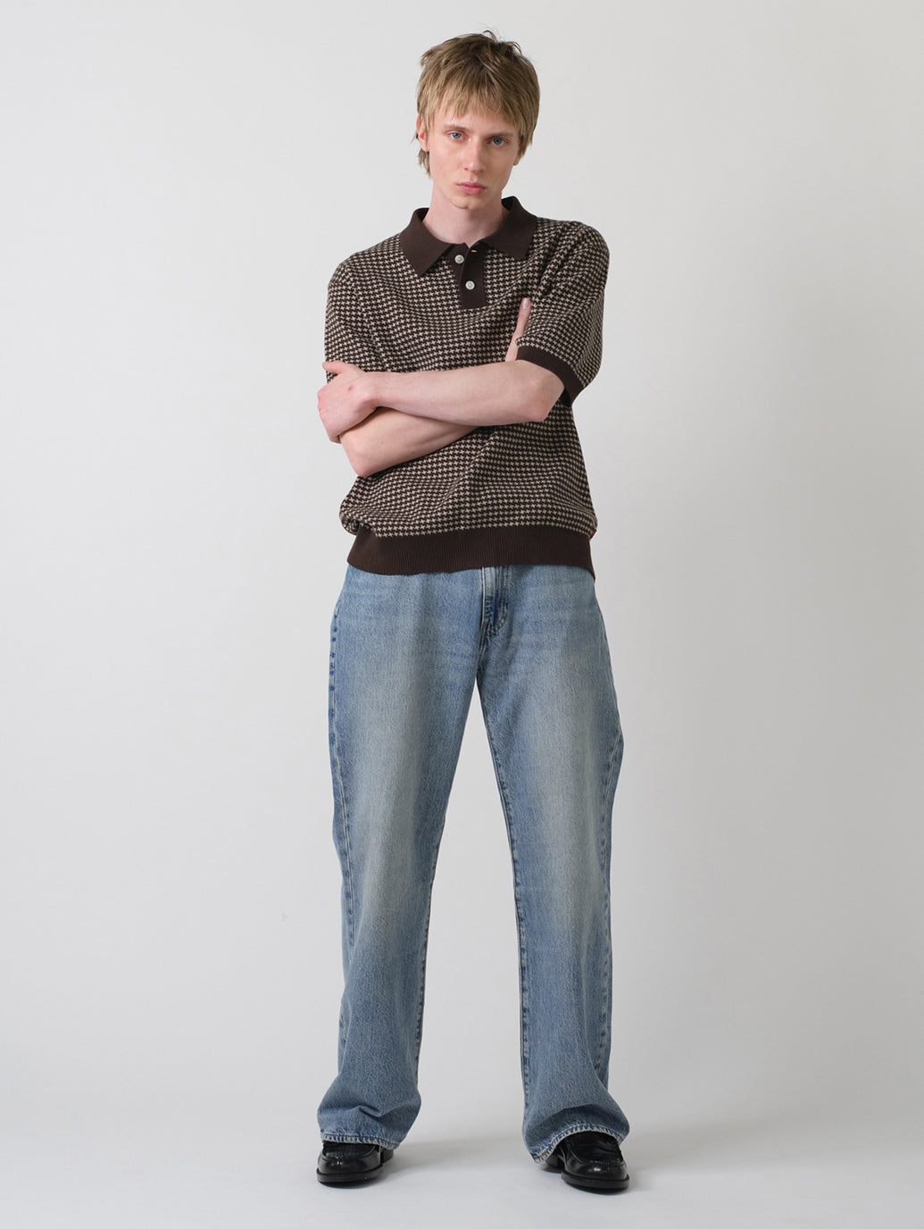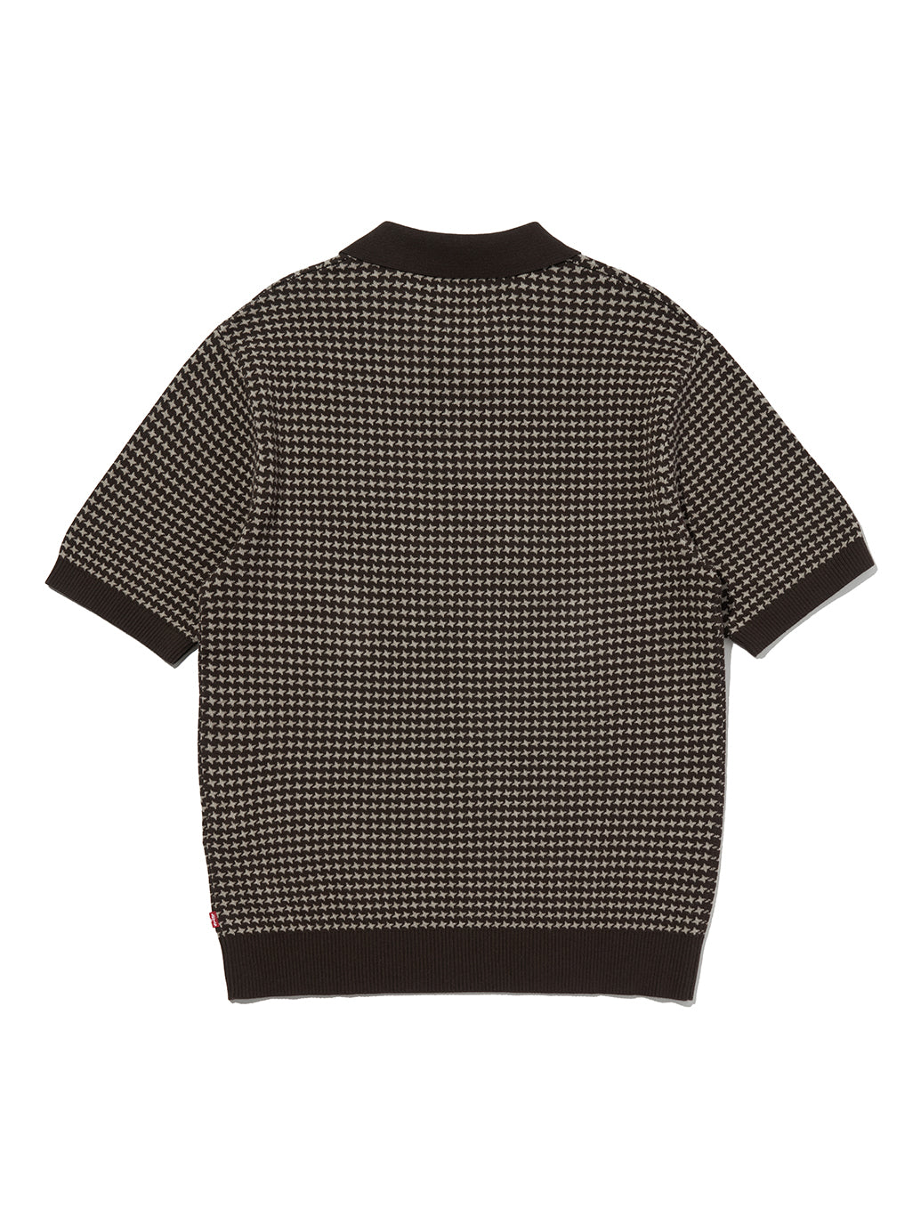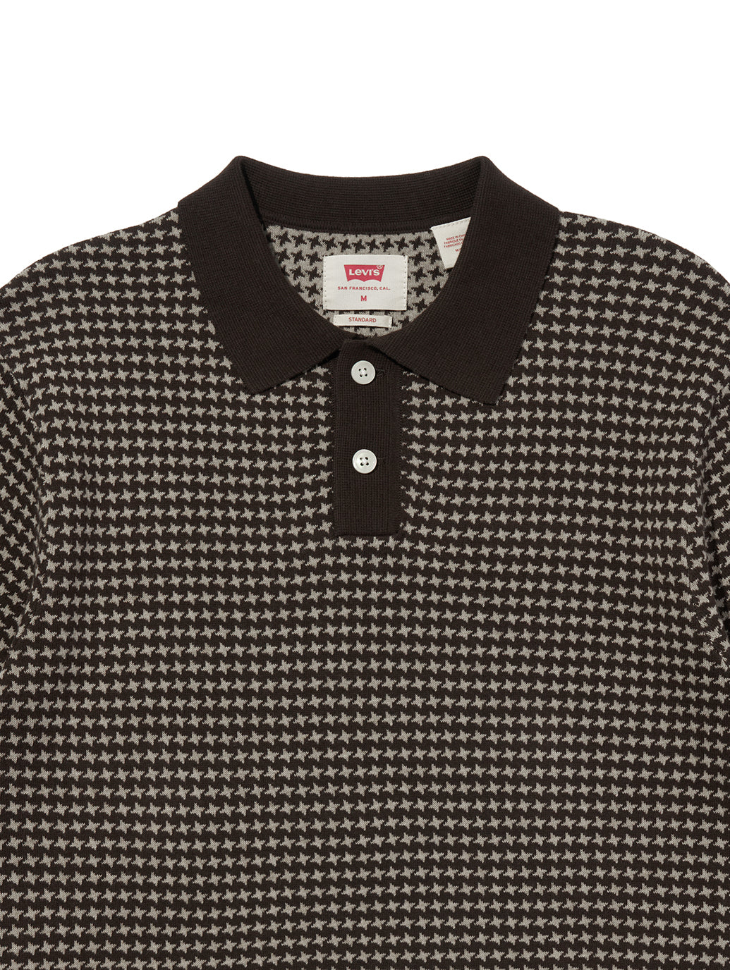 Levi's®で珍しいブラウンカラーで総柄をあしらったデザインのニットポロ。ニット素材なので伸縮性があり、ソフトな着心地。シンプルなパンツに合わせていただきたい一枚です。