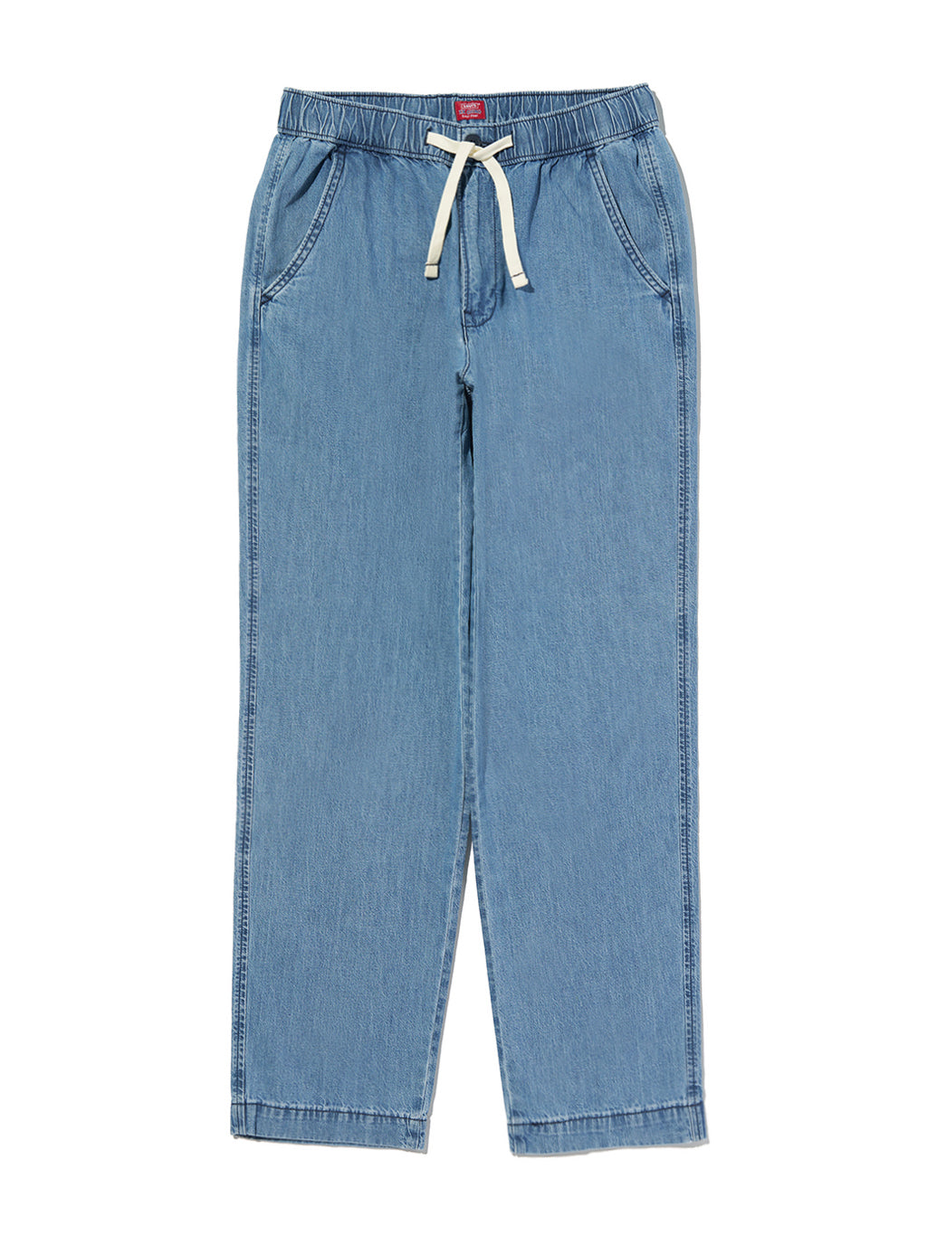 ヒップから太ももにかけてゆとりのあるリラックスフィット。スタイリングの幅が広く、綿100%でしっかりとした着心。お持ちのスニーカーと合わせていただきたいアイテムです。