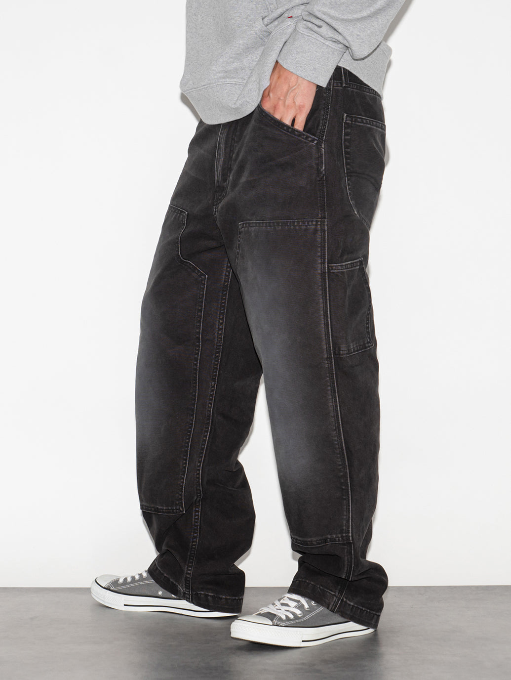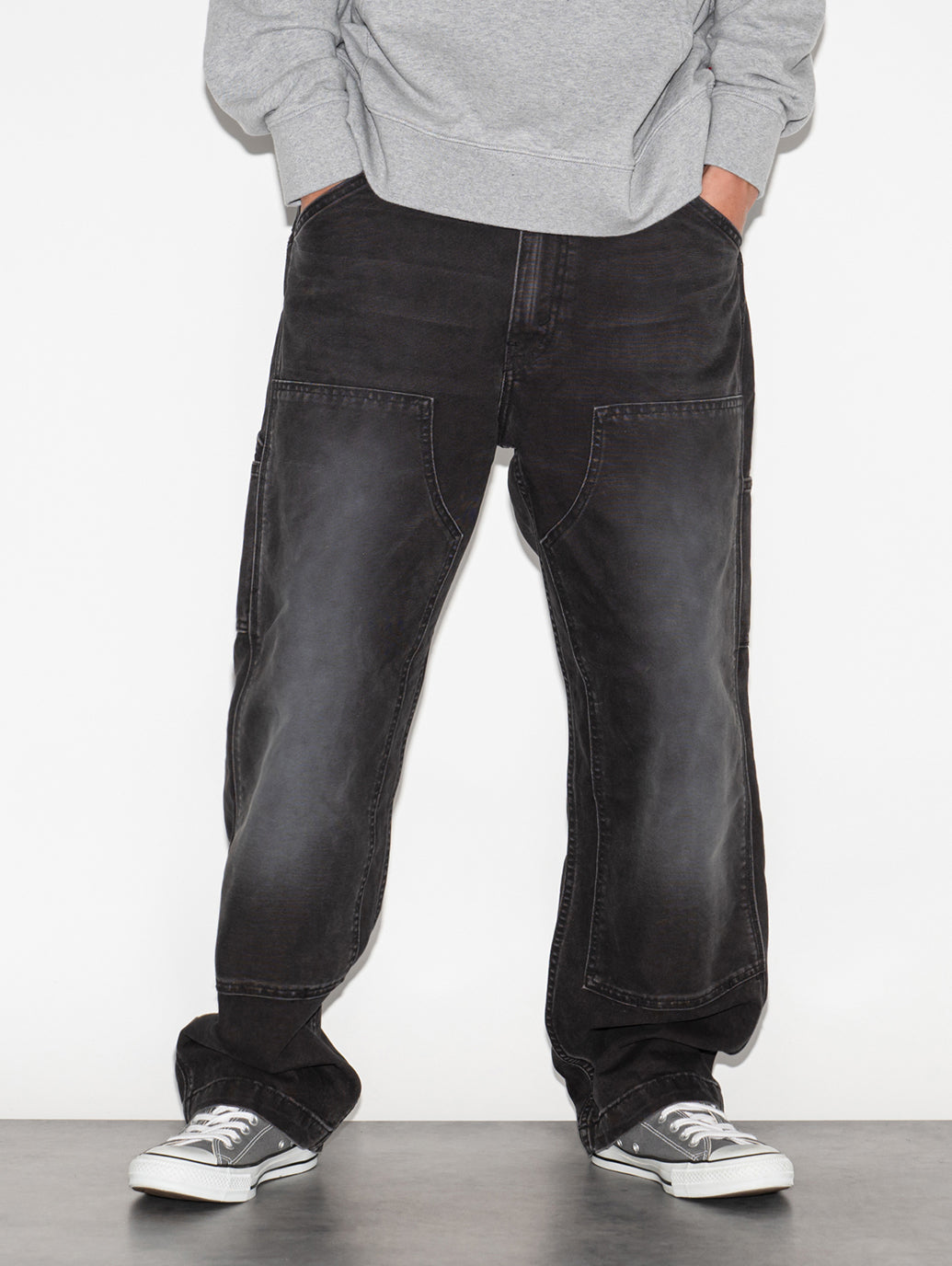 近年の90'sのリバイバルとしてストリート、スケートシーンで着実に知名度が拡がってきており568というロットナンバーが付いたステイルーズ。その名の通り全体的にゆったりとしたストレートシルエットに、綿100%の生地、耐久性のダブルニー構造を反映して当コレクションならではのワークウェア要素をプラスしました。良い塩梅にフェードしたブラックカラーもポイント。ファッションアイテムのみならず、作業着としても活躍する一本です。