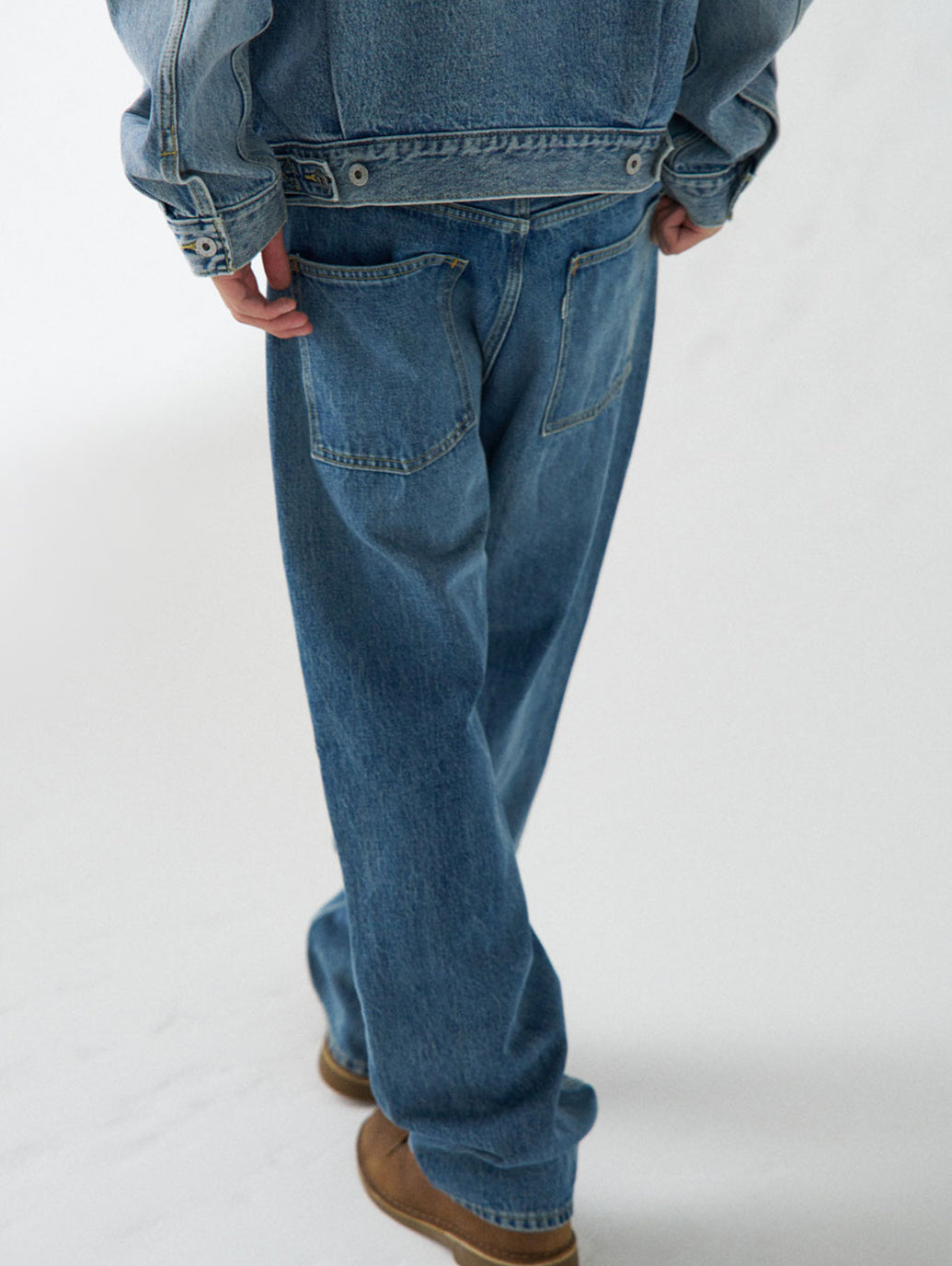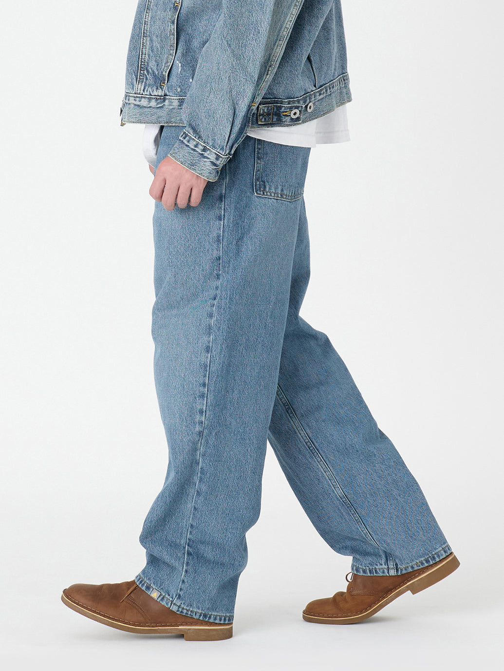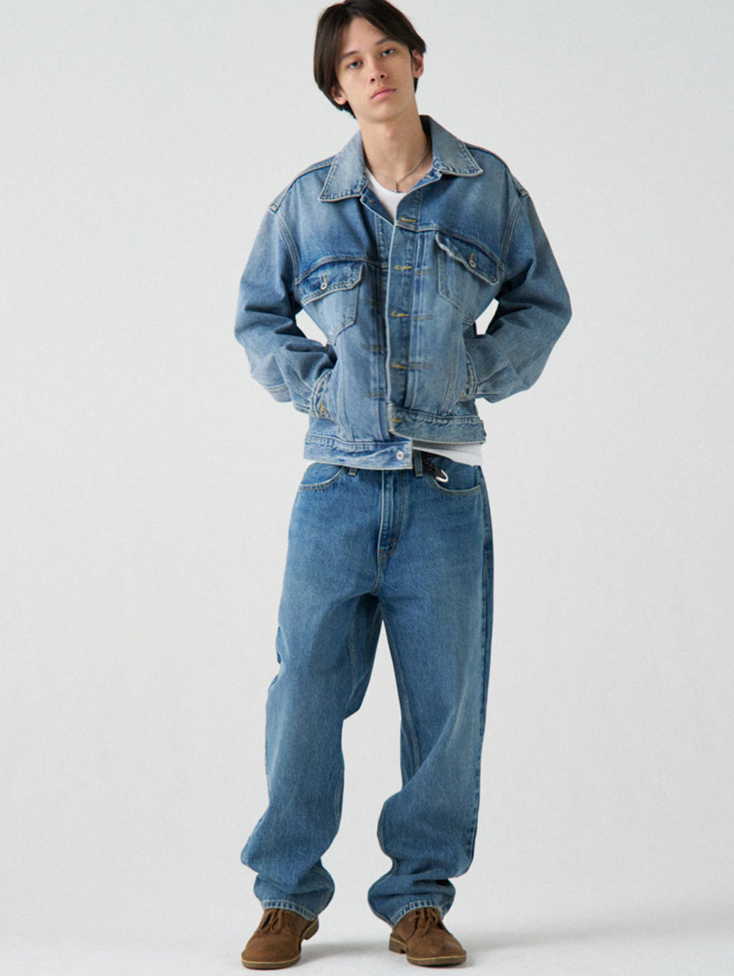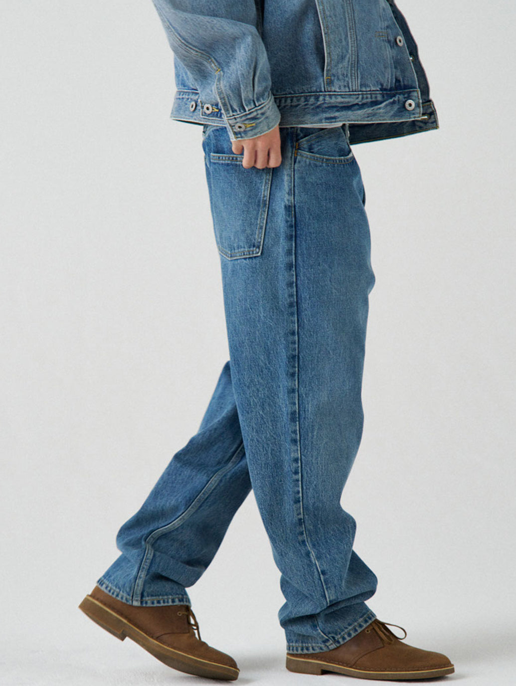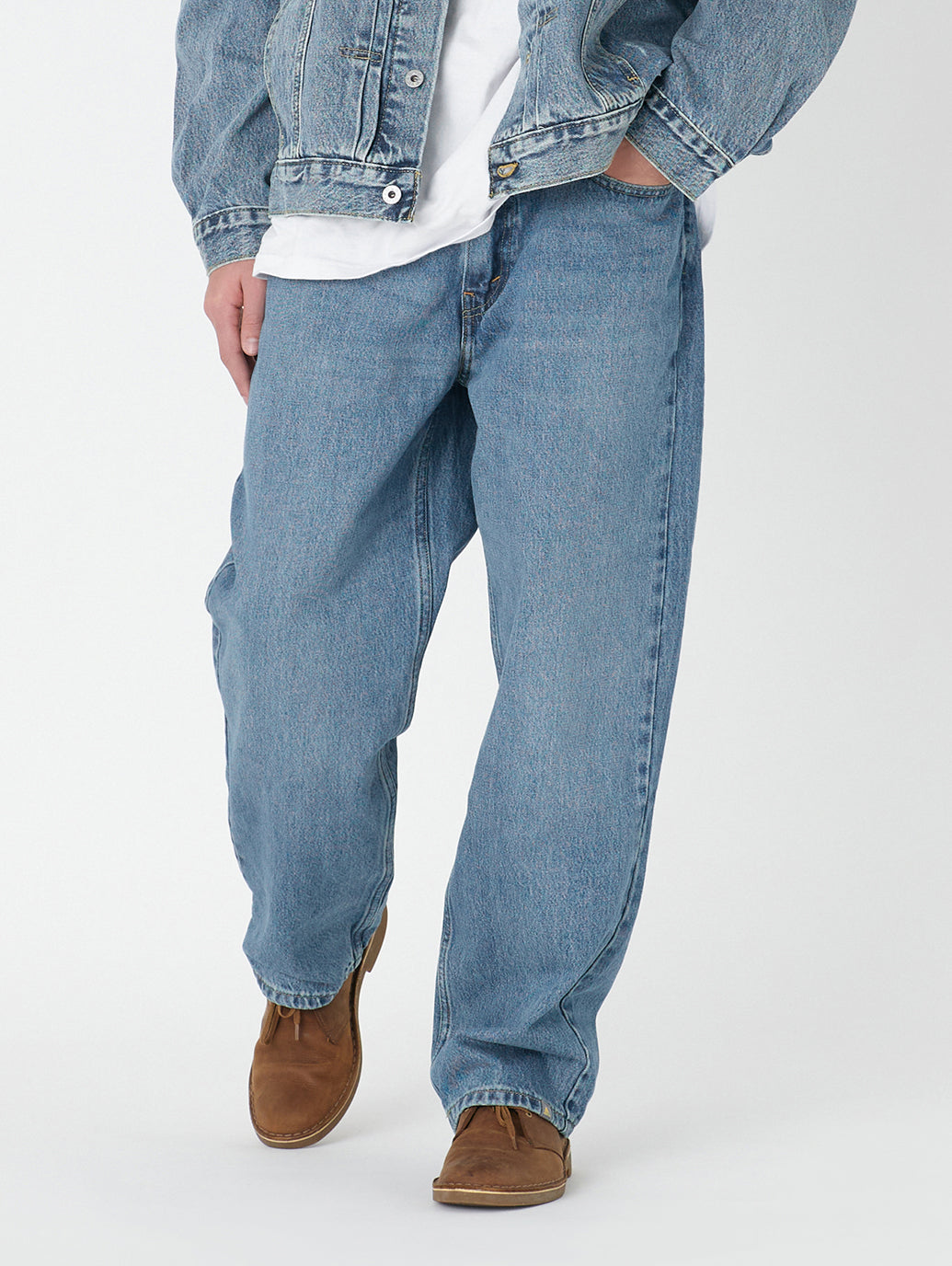 SILVERTAB™を代表するフィットの一つである「LOOSE」。全体的にルーズでゆとりがありながらも、裾に向かって細くなるテーパードになっているので足元が引き立つのが魅力のシルエット。ミッドユーズドの加工を施し90年代を感じさせるいなたい色味と雰囲気のあるジーンズです。足元にボリュームを出しながら穿いて頂くのがオススメです。