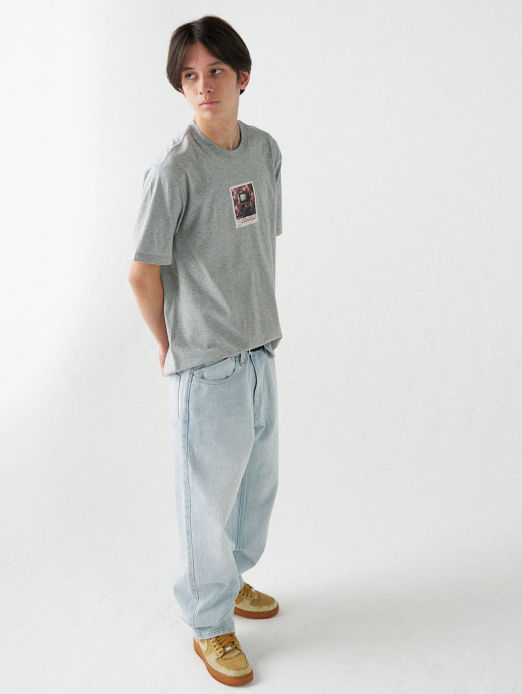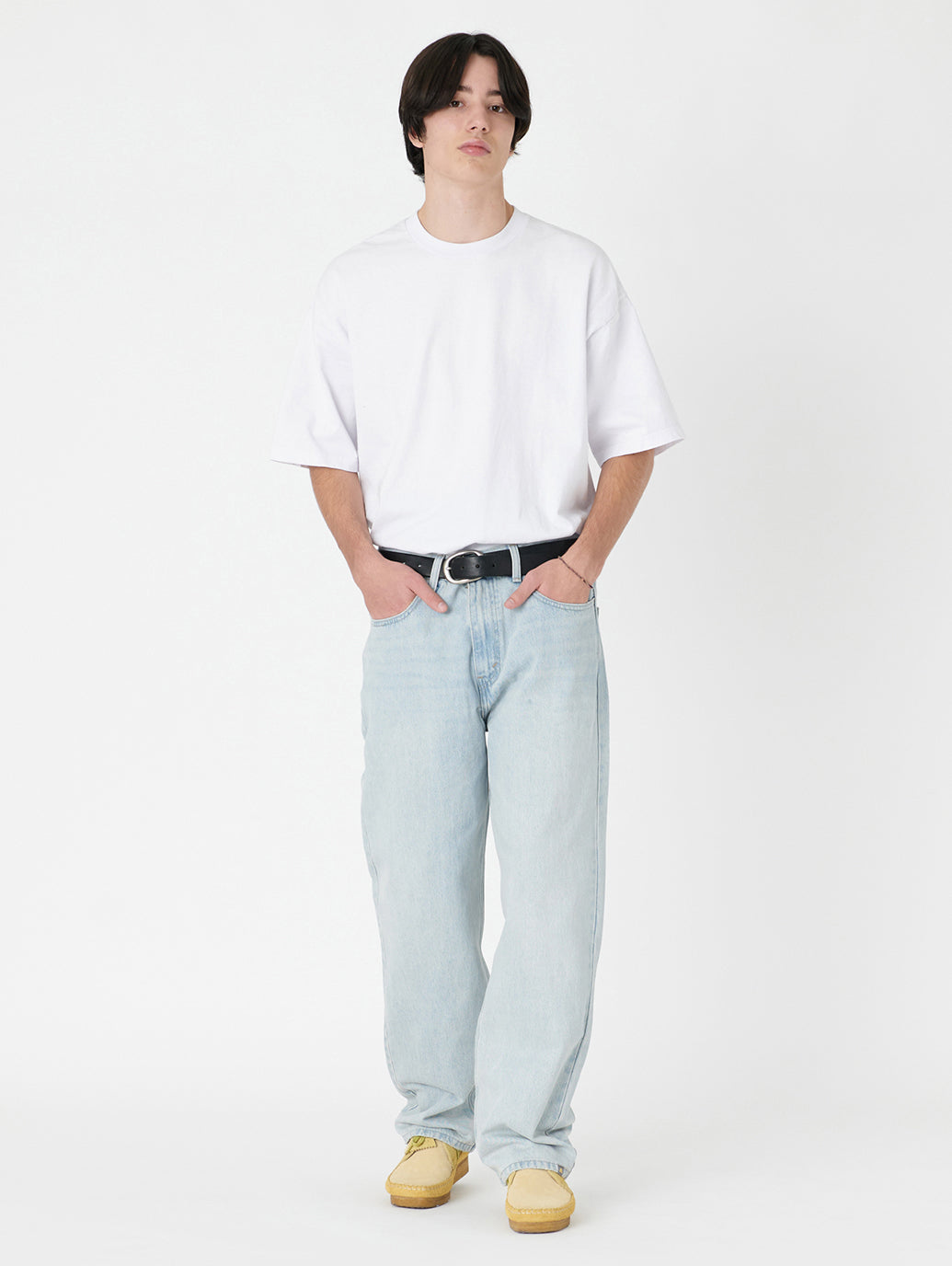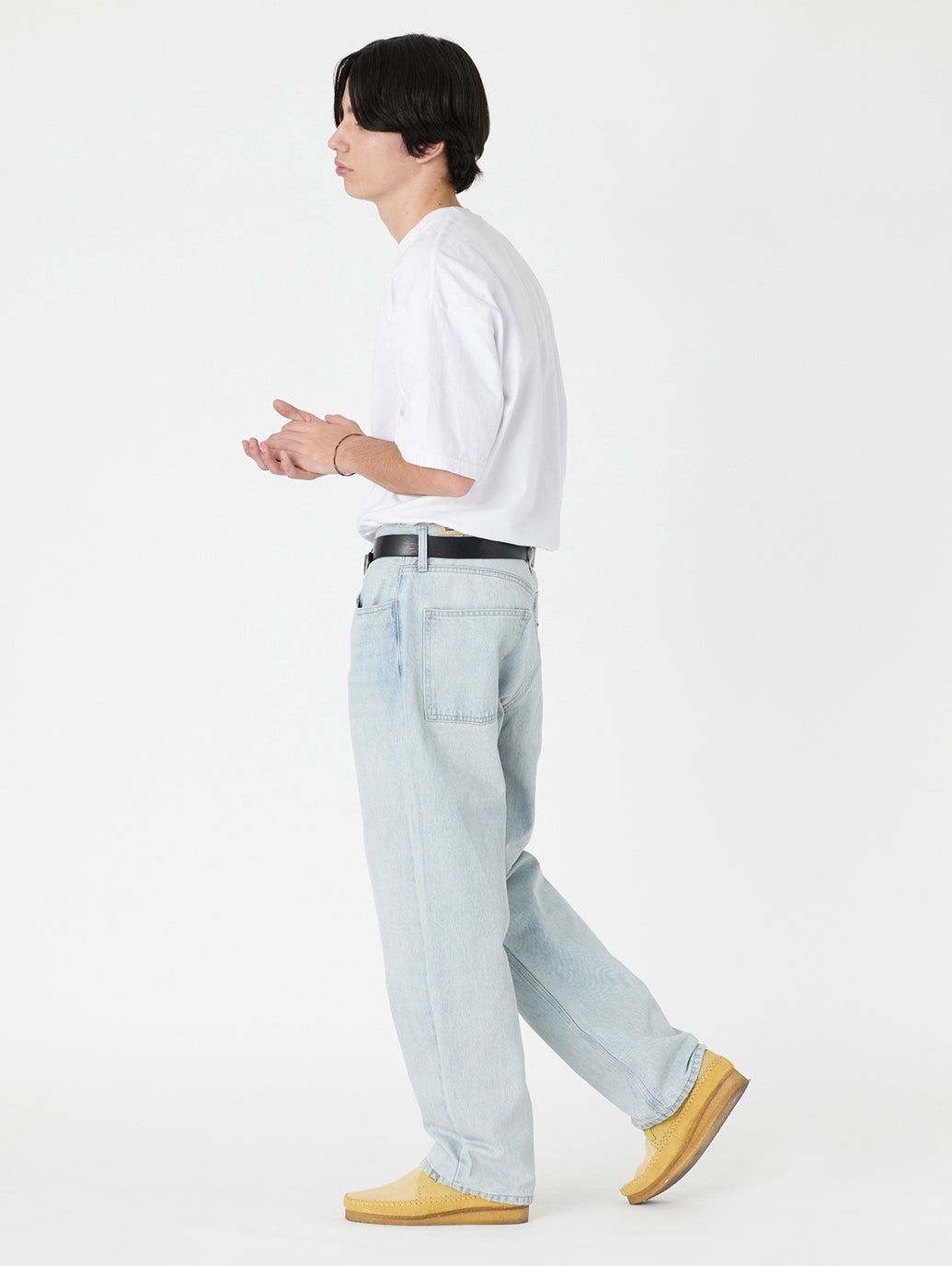 SILVERTAB™を代表するフィットの一つである「LOOSE」。全体的にルーズでゆとりがありながらも、裾に向かって細くなるテーパードになっているので足元が引き立つのが魅力のシルエット。色味が残る限界までの色落ち加工を施し、90年代を感じさせるいなたい色味と雰囲気のあるジーンズです。足元にボリュームを出しながら穿いて頂くのがオススメです。