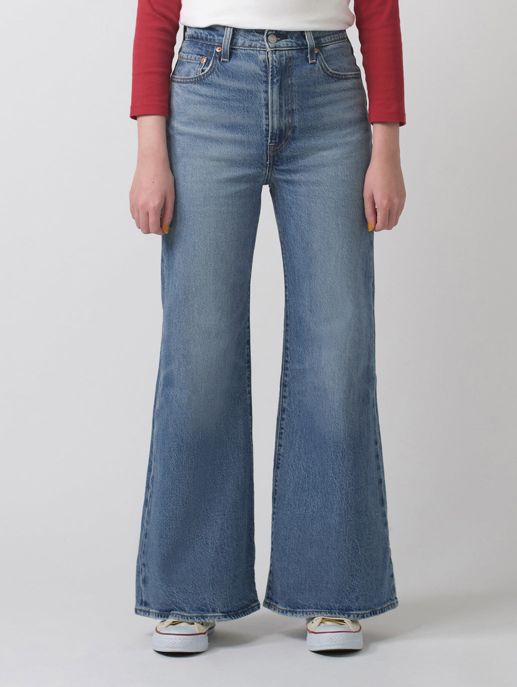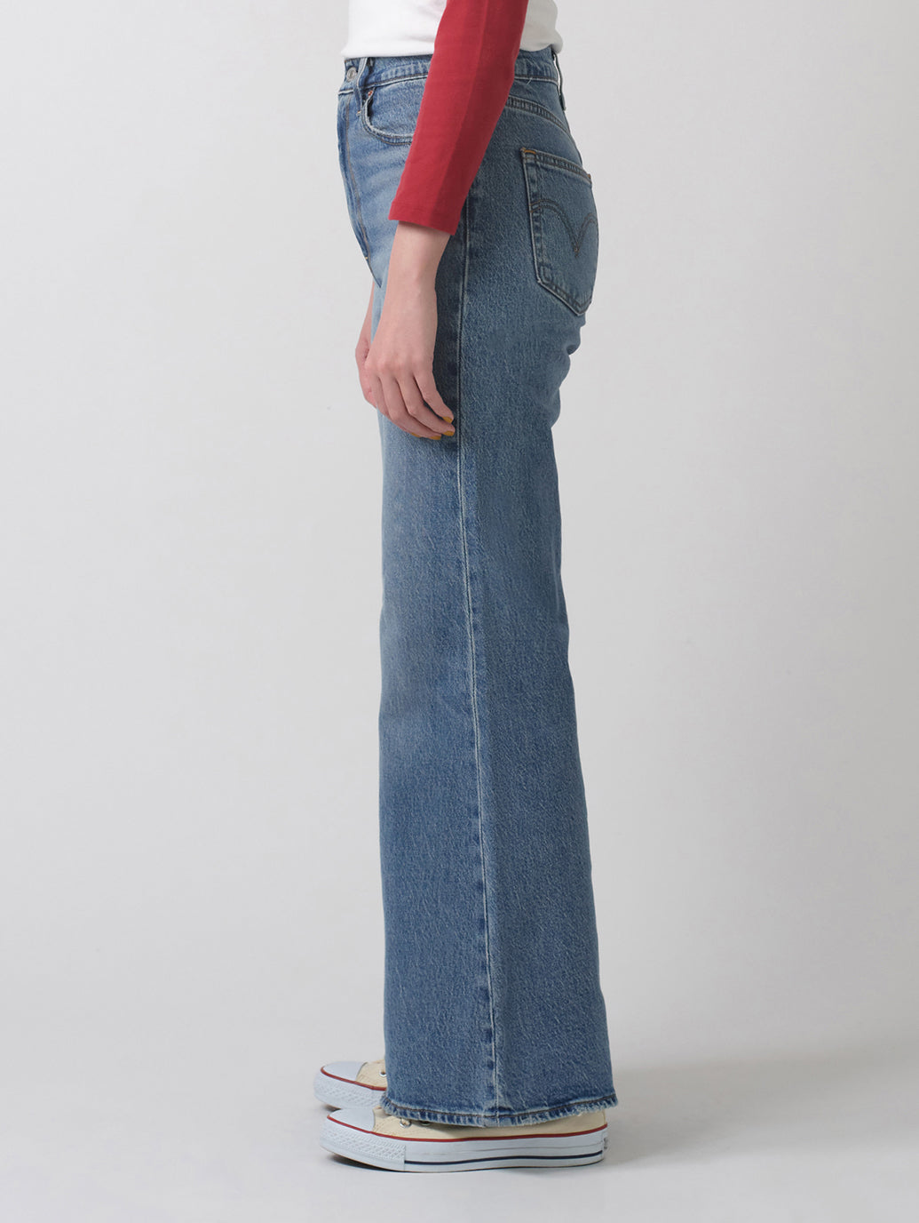 レディースのラインナップで最もハイライズ の12インチライズのRibcageは、ウエストを強調し、足を長く見せてくれるジーンズです。スタイルを強調して、見かけだけでなく気分も上げてくれるフィットです。さらに、シルエットを最高に引き立てる、ヴィンテージ風のベルレッグです。