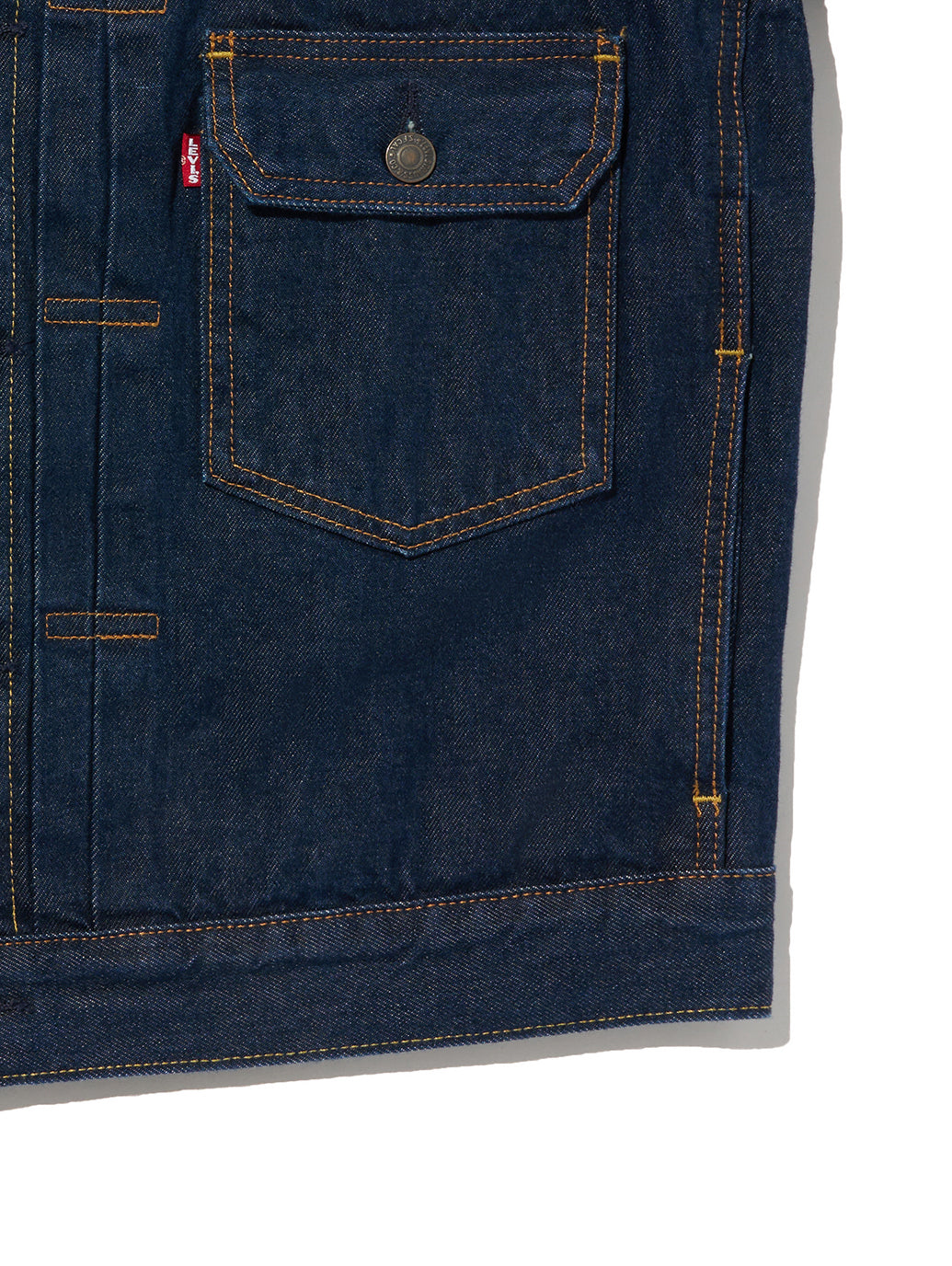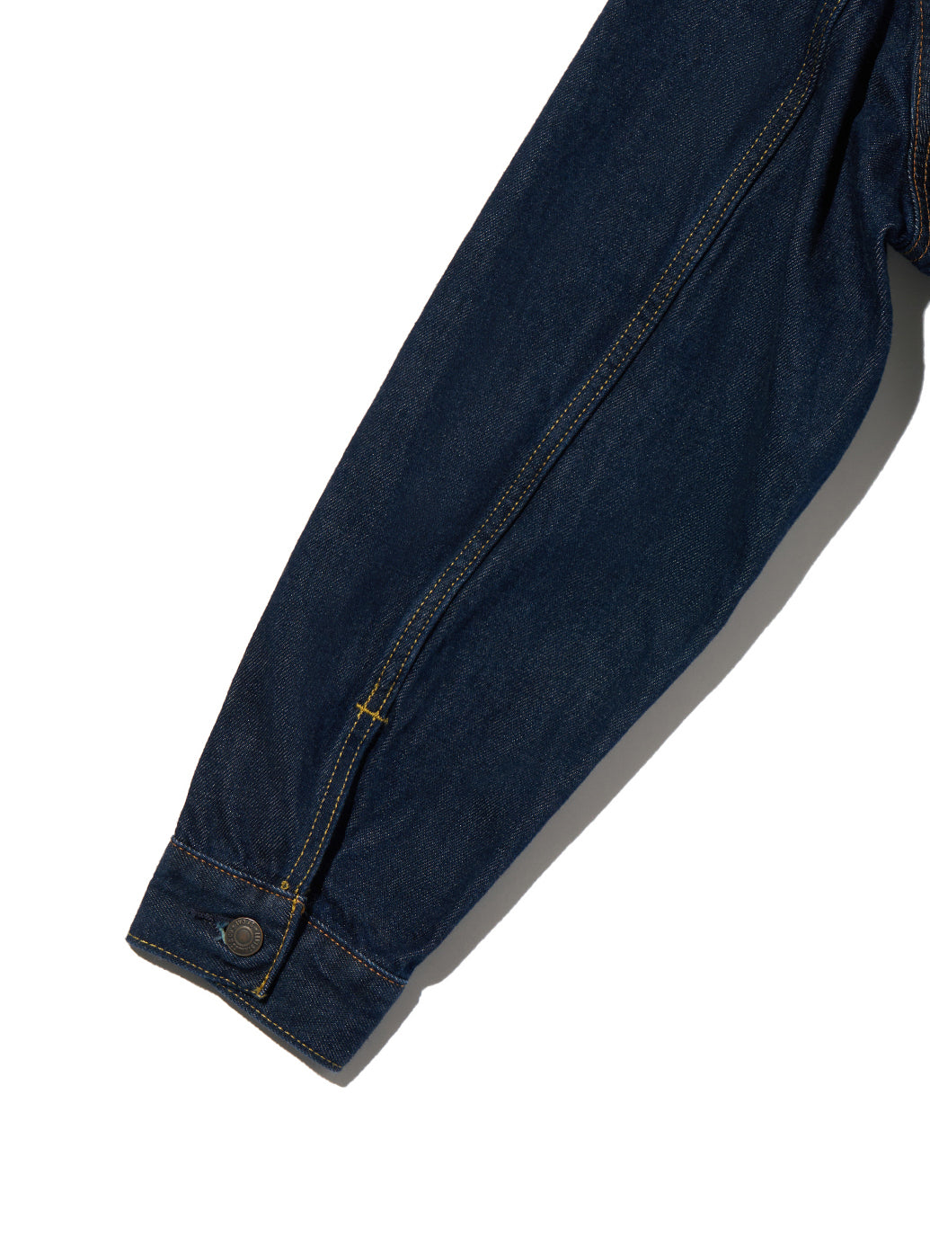 ユニークなプリーツのディテールと2フラップポケットのデザインで知られるType II トラッカージャケットを復活させたヴィンテージ風のジャケット。このトラッカージャケットはオリジナルへのオマージュで、身幅の広いリラックスフィットを採用しゆったりとしたボディに仕上げています。ヴィンテージの雰囲気を感じさせる拘りの詰まった加工を施した一着です。
