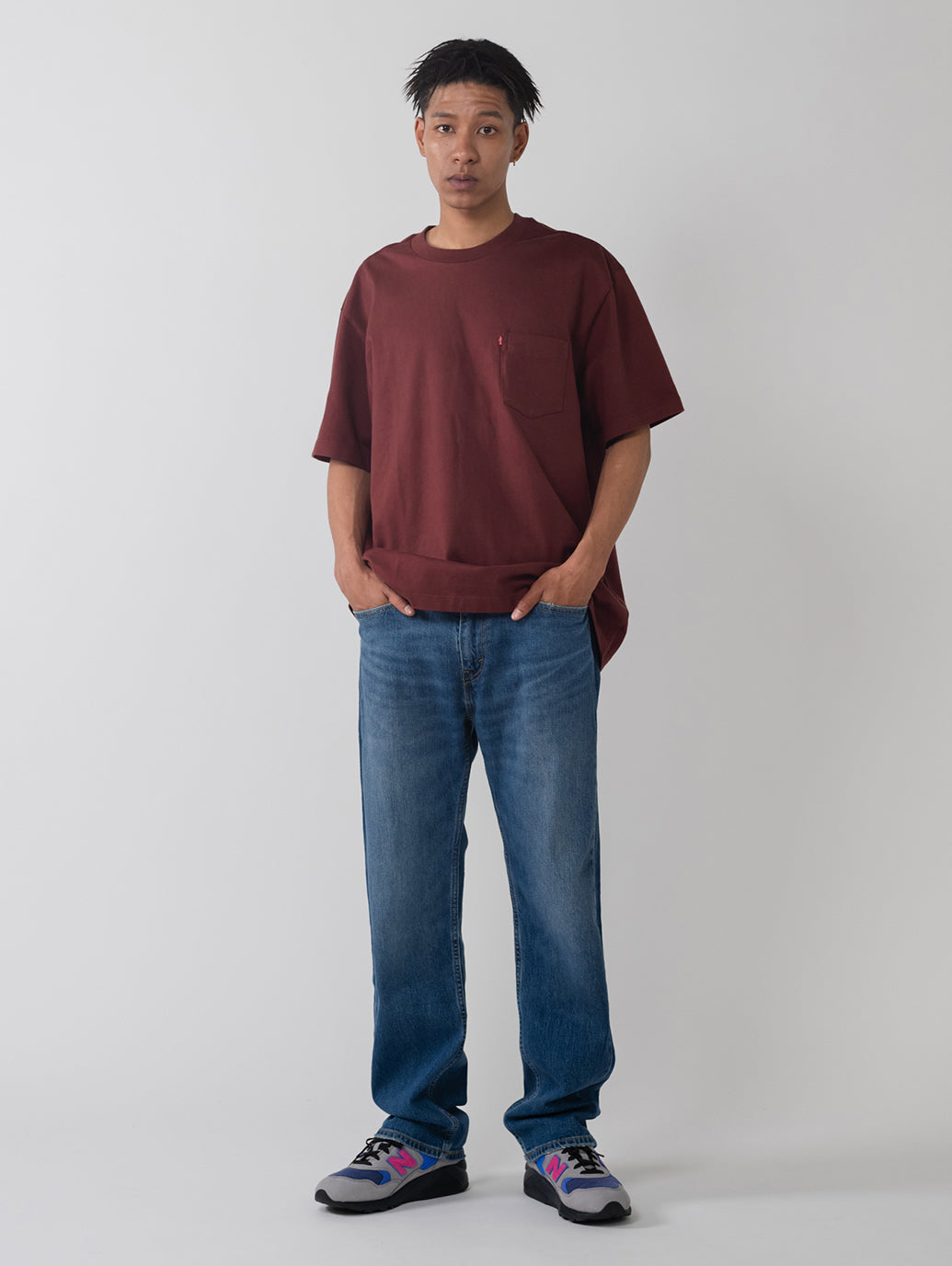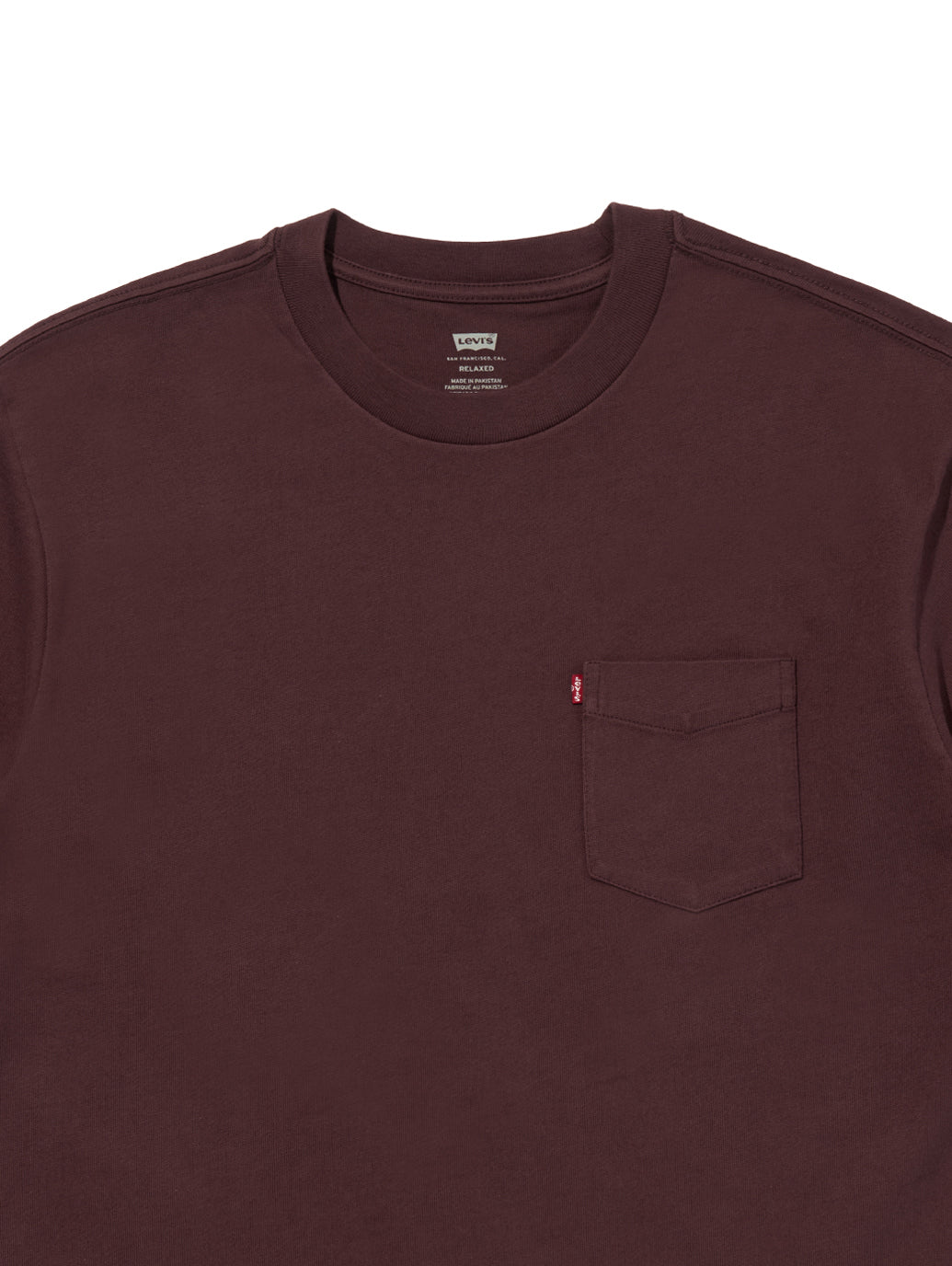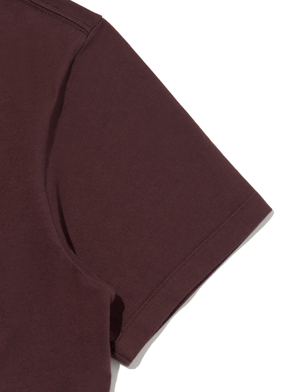 夏の定番トップスの一つであるポケットTシャツ。赤みがかった茶色カラーのゆったりとしたリラックスフィットのボディの胸元にポケットを配したシンプルなデザインです。幅広いスタイリングで重宝する一着です。