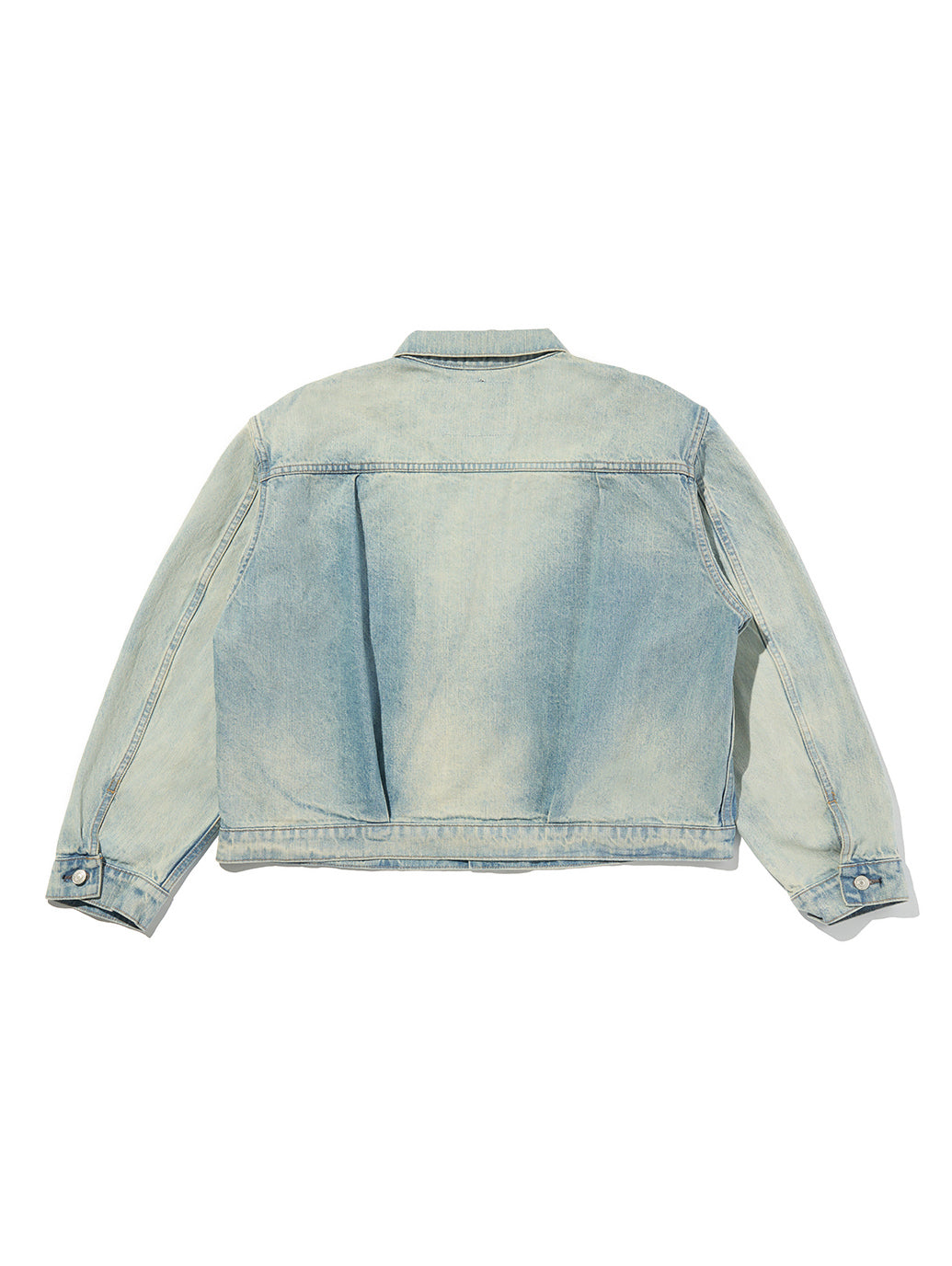 1936年のType I Trucker Jacketを復刻したヴィンテージ風シルエットのTYPE I TRUCKER。前面に入れたダブルプリーツ、シングルの胸ポケット、フィット感を調整できるシンチバックなど、当時のディテールを再現しました。リラックスしたボクシーなフィットにヴィンテージの雰囲気を感じさせる独特でありながらも繊細ない色落ち加工を施した拘りの一着です。
