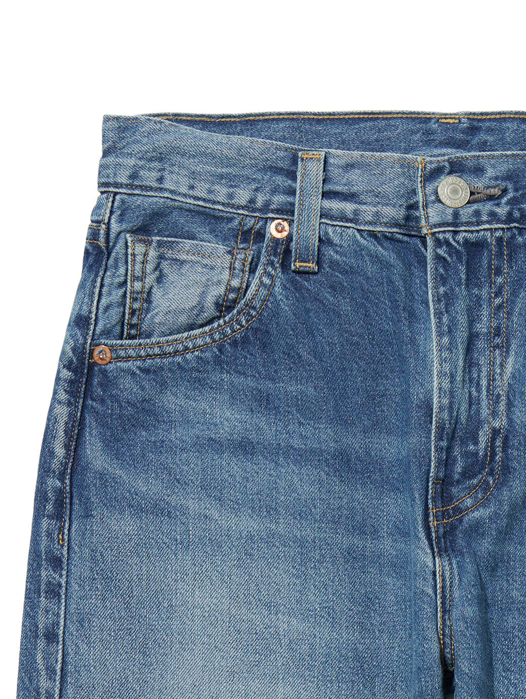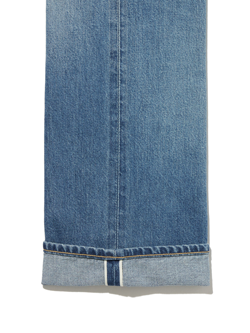 スタイルを良く見せるワイドレッグに着やすいミッドライズで体にフィットするスタイルのジーンズがデザインされました。丈夫なセルビッジを使用したニュークラシックです。