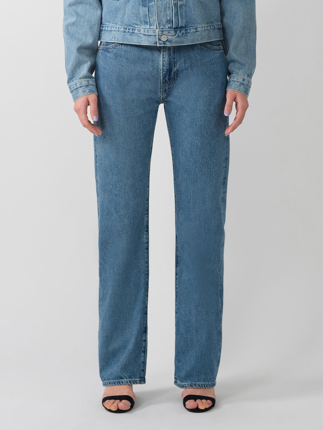スタイルを良く見せるワイドレッグに着やすいミッドライズで体にフィットするスタイルのジーンズがデザインされました。丈夫なセルビッジを使用したニュークラシックです。