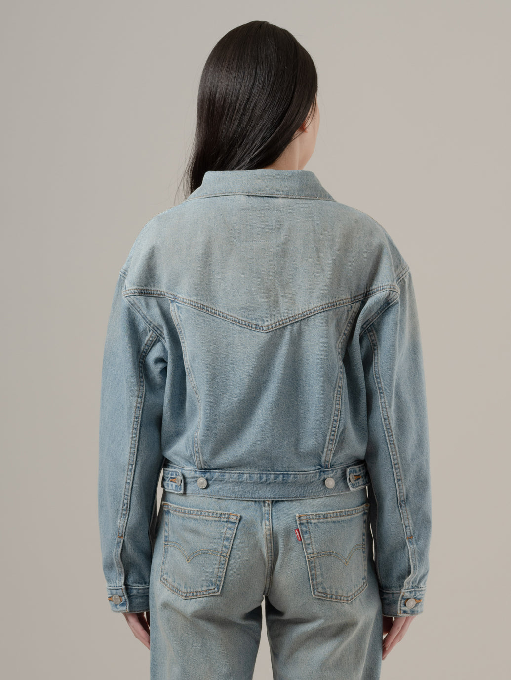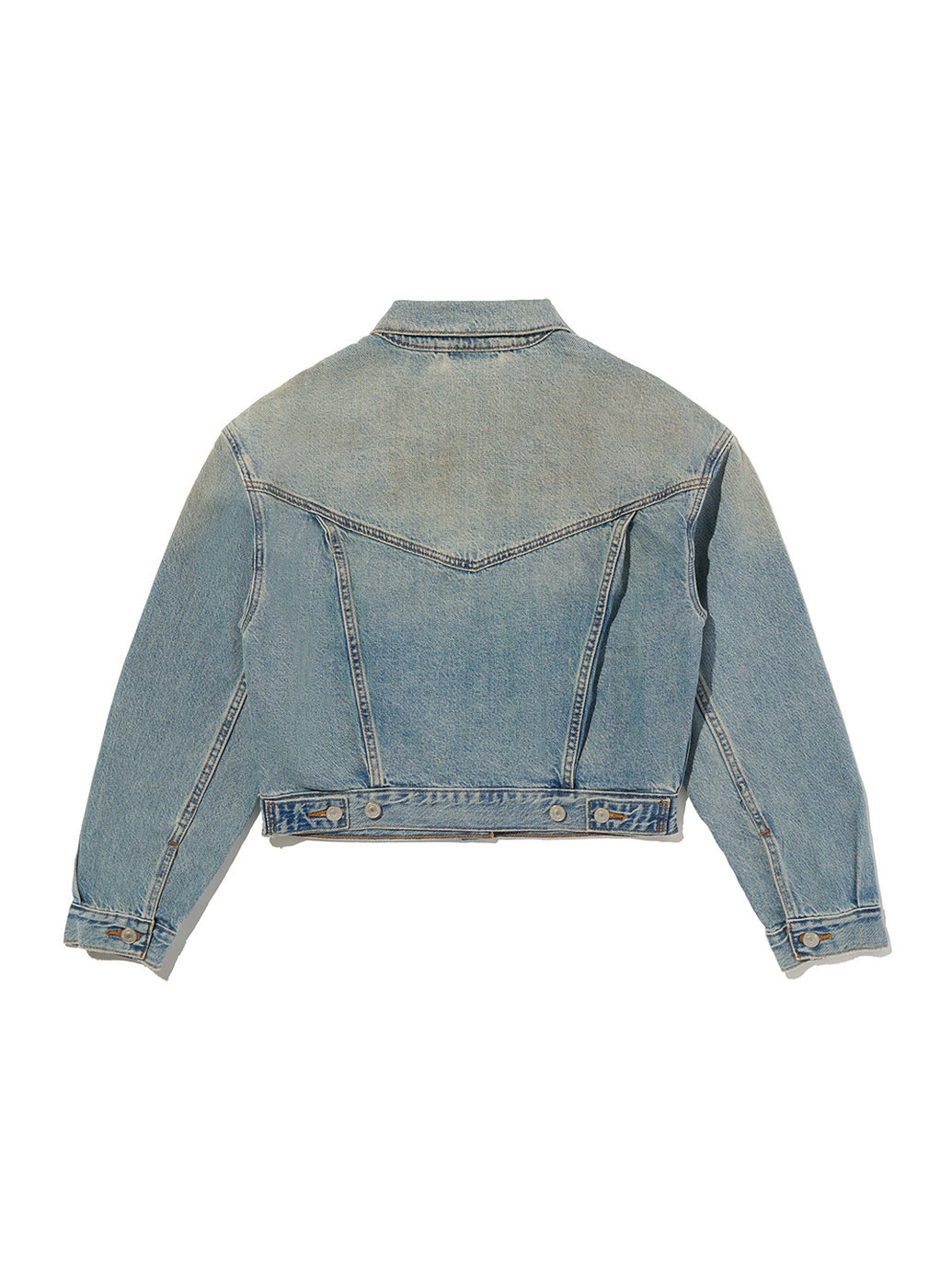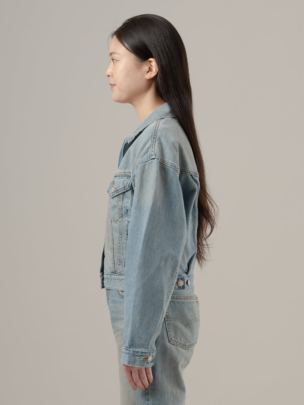 アイコニックな'90s トラッカージャケットをクロップド丈でアップデート。シンプルなシェイプで、着やすいウェイト、ボディラインに沿ったレトロなカットのシルエットが90年代風の雰囲気を演出します。デニムとのセットアップはもちろん、マキシ丈のワンピースやスカートとの相性も抜群 model:167cm B74 W61 H88 着用サイズ:S