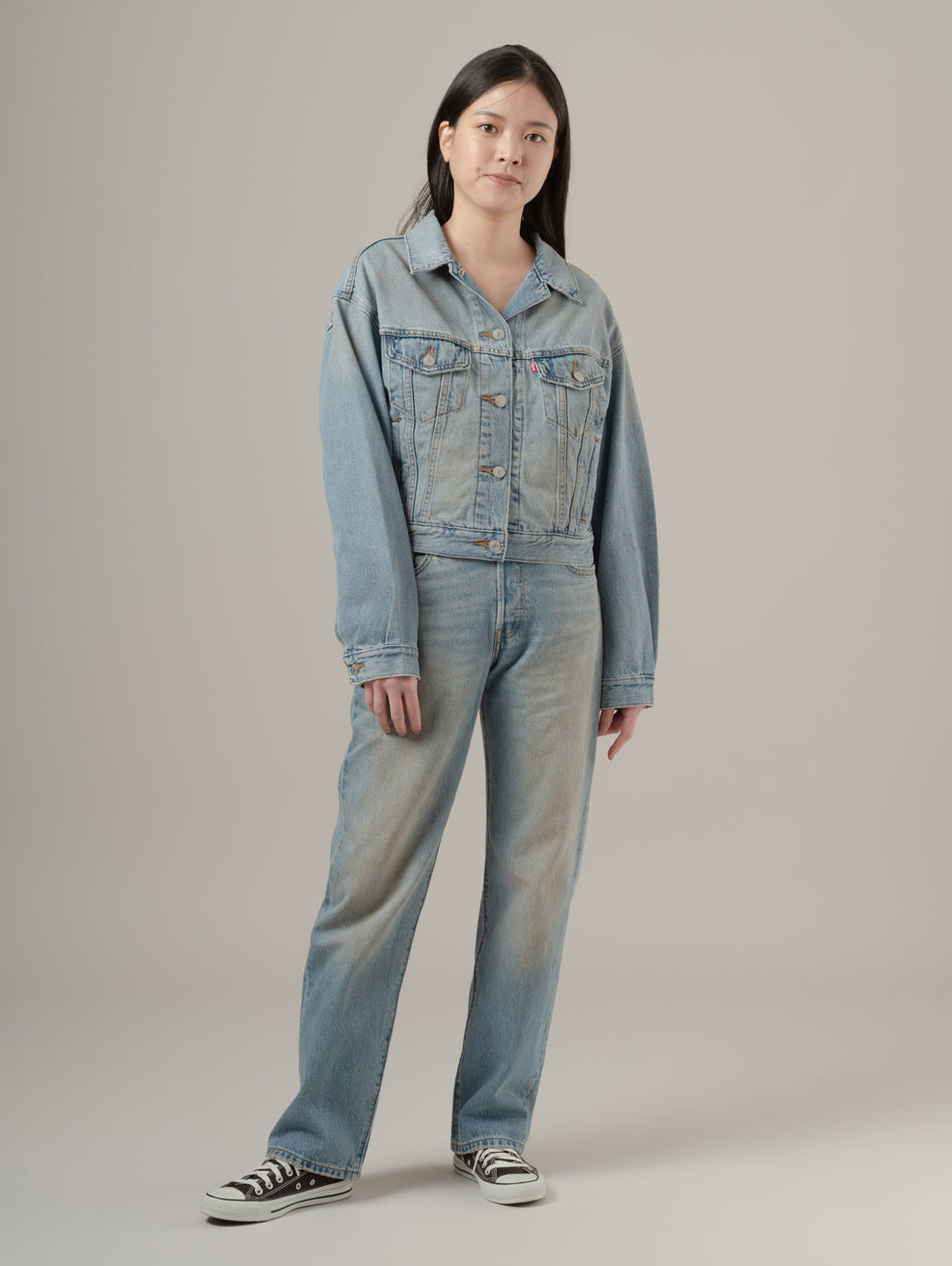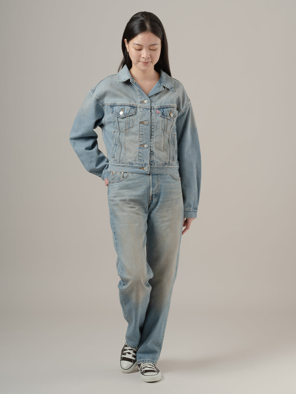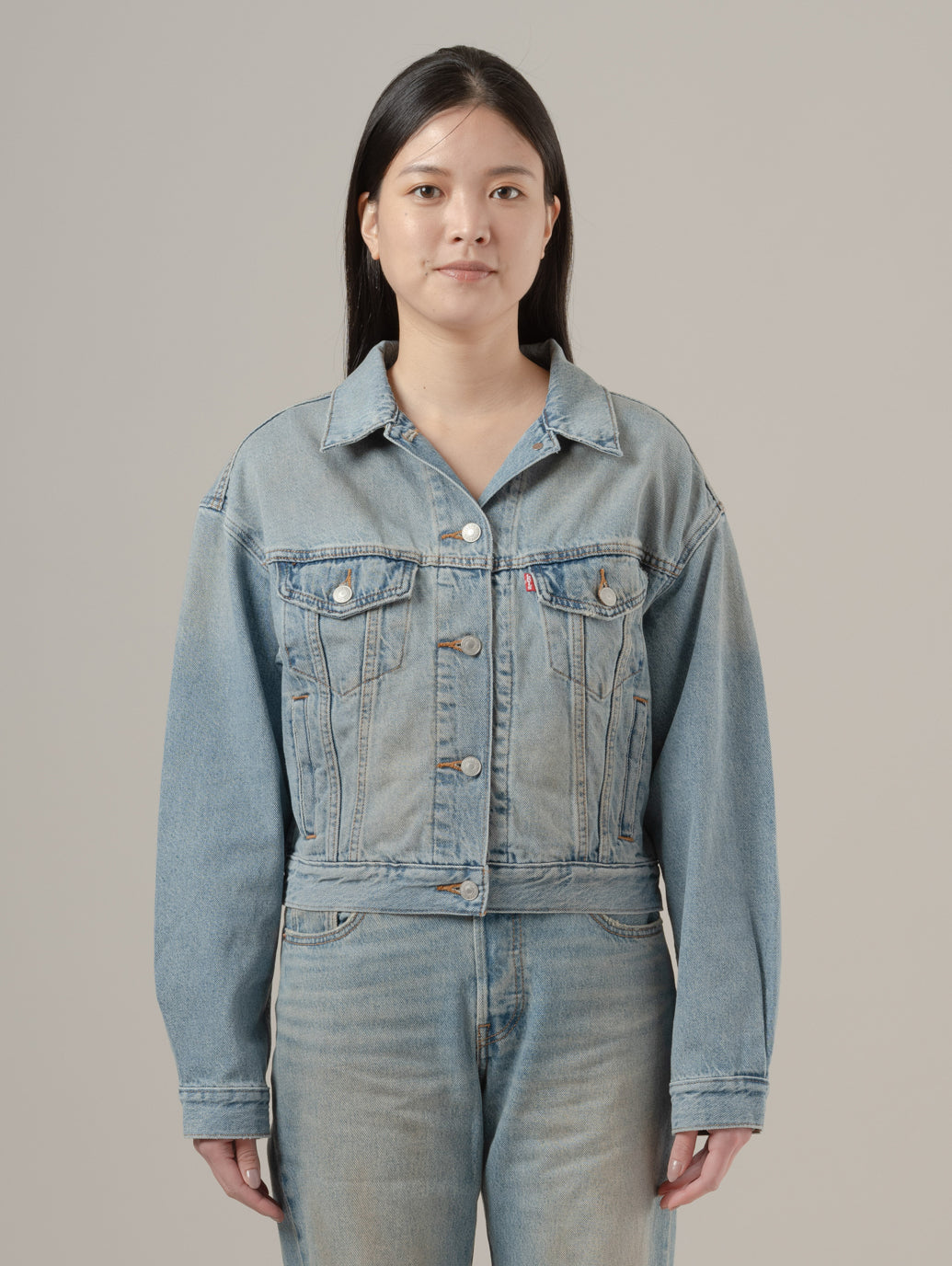 アイコニックな'90s トラッカージャケットをクロップド丈でアップデート。シンプルなシェイプで、着やすいウェイト、ボディラインに沿ったレトロなカットのシルエットが90年代風の雰囲気を演出します。デニムとのセットアップはもちろん、マキシ丈のワンピースやスカートとの相性も抜群 model:167cm B74 W61 H88 着用サイズ:S