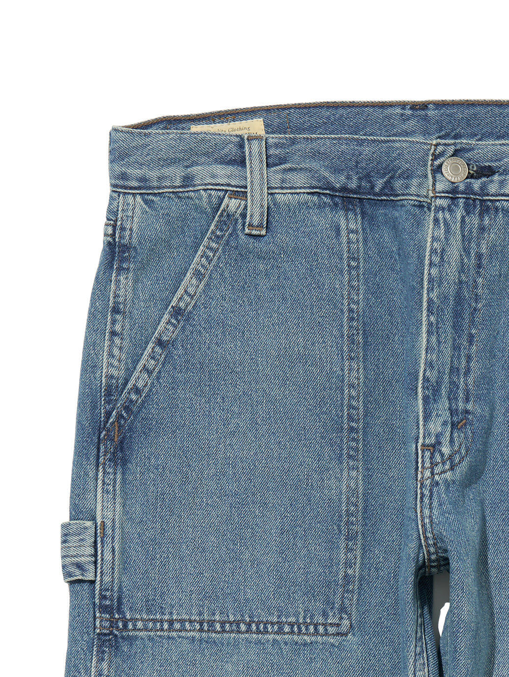 リラックス感のあるゆったりとしたストレートフィットのユーティリティパンツ。雰囲気のあるフェードを施したライトカラー、サイドにハンマーループも配し、ワーク要素も取り入れているのが特徴です。ポケットのアーキュエイトステッチも取り除きシンプルなデザインになっています。普段穿くのは勿論、作業着としても活躍する一本です。