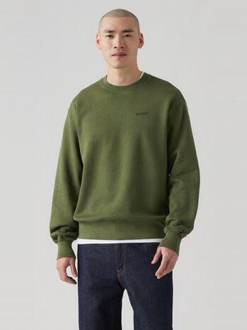 柔らかく起毛したファブリック、ゆったりとしたリラックスフィットを採用したオリーブカラーのボディの胸元に同色の刺繍ロゴをあしらったシンプルかつレトロな雰囲気を感じさせるデザインです。お気に入りのジーンズに是非合わせて頂きたい一着です。