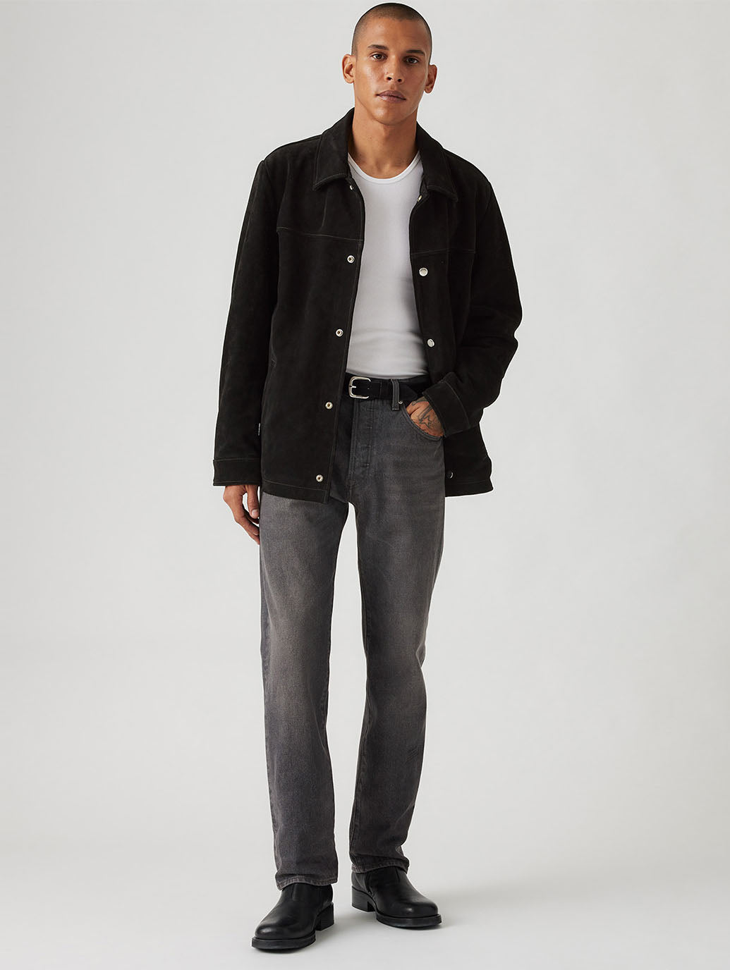 501®'93ジーンズはShrink-to-Fit™デニムでデザインされ、クラシックなミッドライズ、ストレートレッグ、タンスエードの共同ブランドバックパッチが特徴です。さらに、ポケットバッグにはJJJoundのシグネチャーラベルを縫い付け、金具にはポリッシュ仕上げのニッケルを使用し、ウォッチポケットにはJJJoundのロゴスタンプと刺繍をプリントしています。