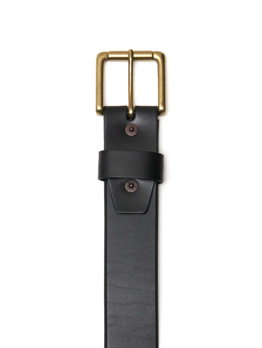 丈夫で長持ちする本革を使ったレザーベルト 。耐久性のある構造、四角いバックルで流行り廃りのないデザインです。どんなボトムスにも合わせやすく、経年変化も楽しめるアイテムです。