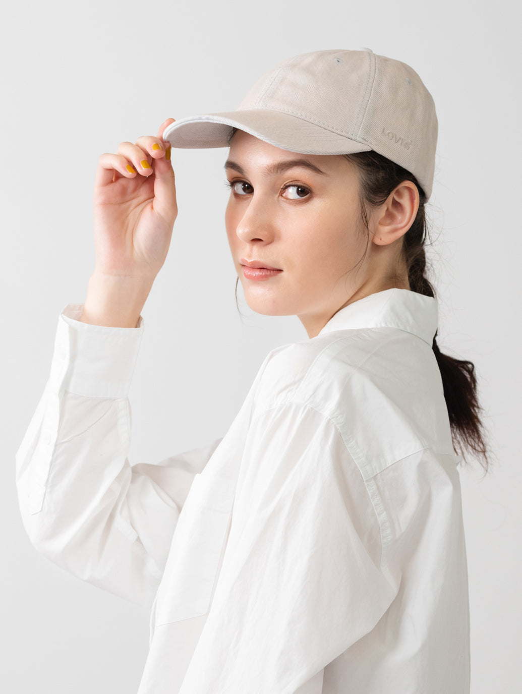 淡いサーモンピンクカラーのボディのサイドに同色の刺繍ロゴを配し、留め具はレザー仕様のデザインです。シンプルなのでどのスタイリングにも合わせやすく持っておくと重宝するアイテムです。