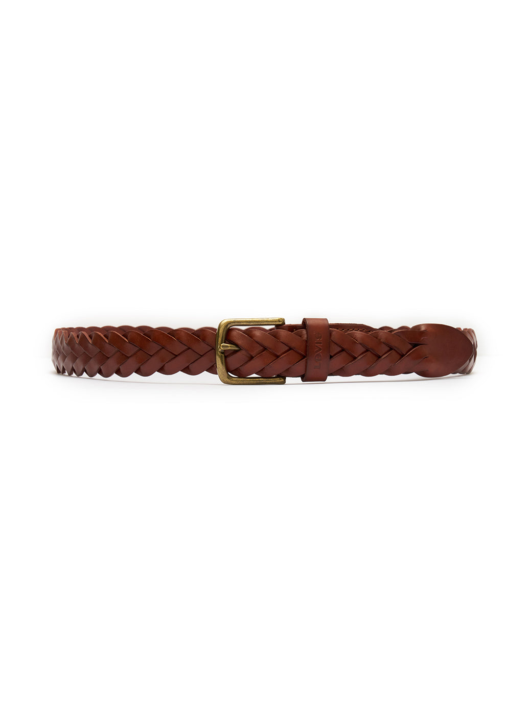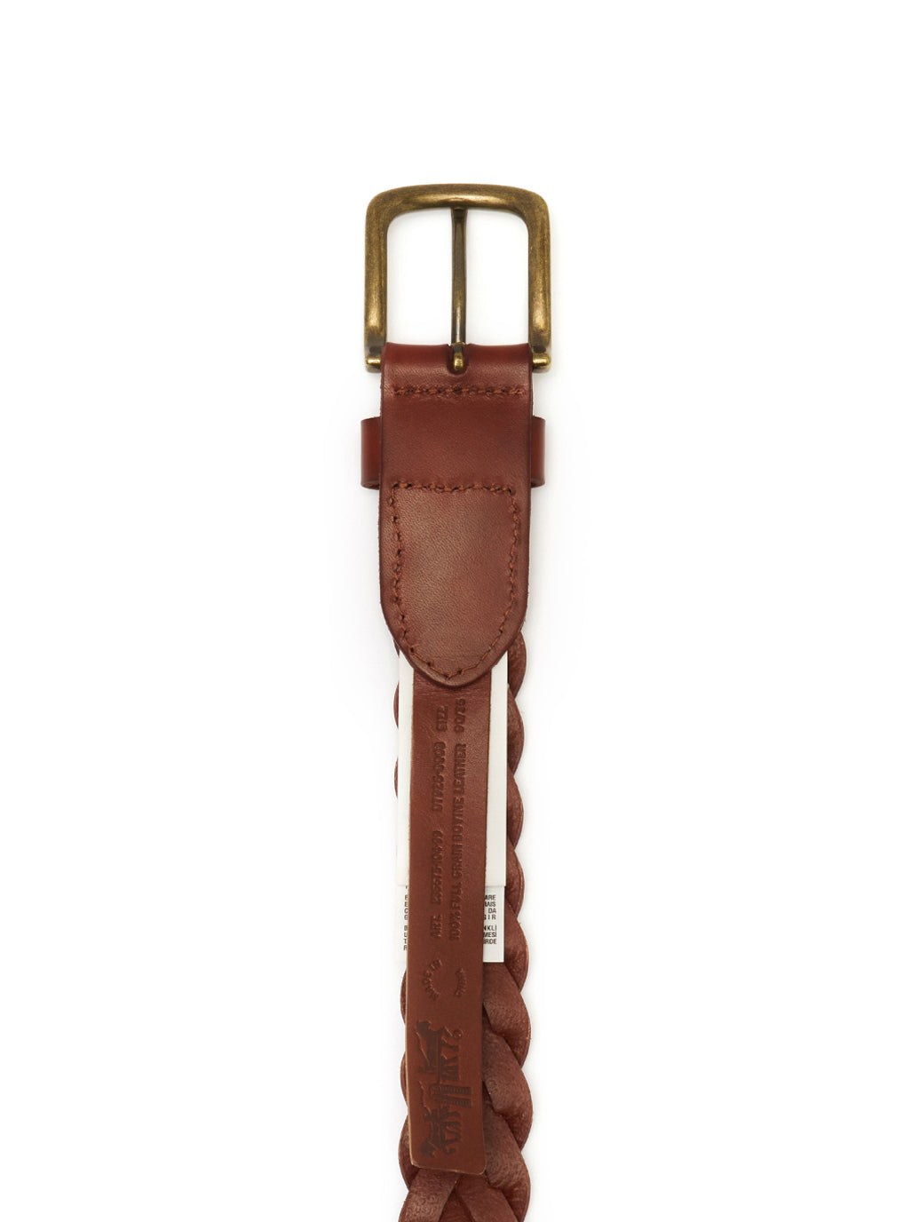 フルグレインレザーで作られたダークブラウンカラーのベルト。編込みタイプ、ゴールドのバックルでスタイリッシュなデザインです。ウエスト調整もしやすくシンプルな着こなしのアクセントとしても活躍するアイテムです。